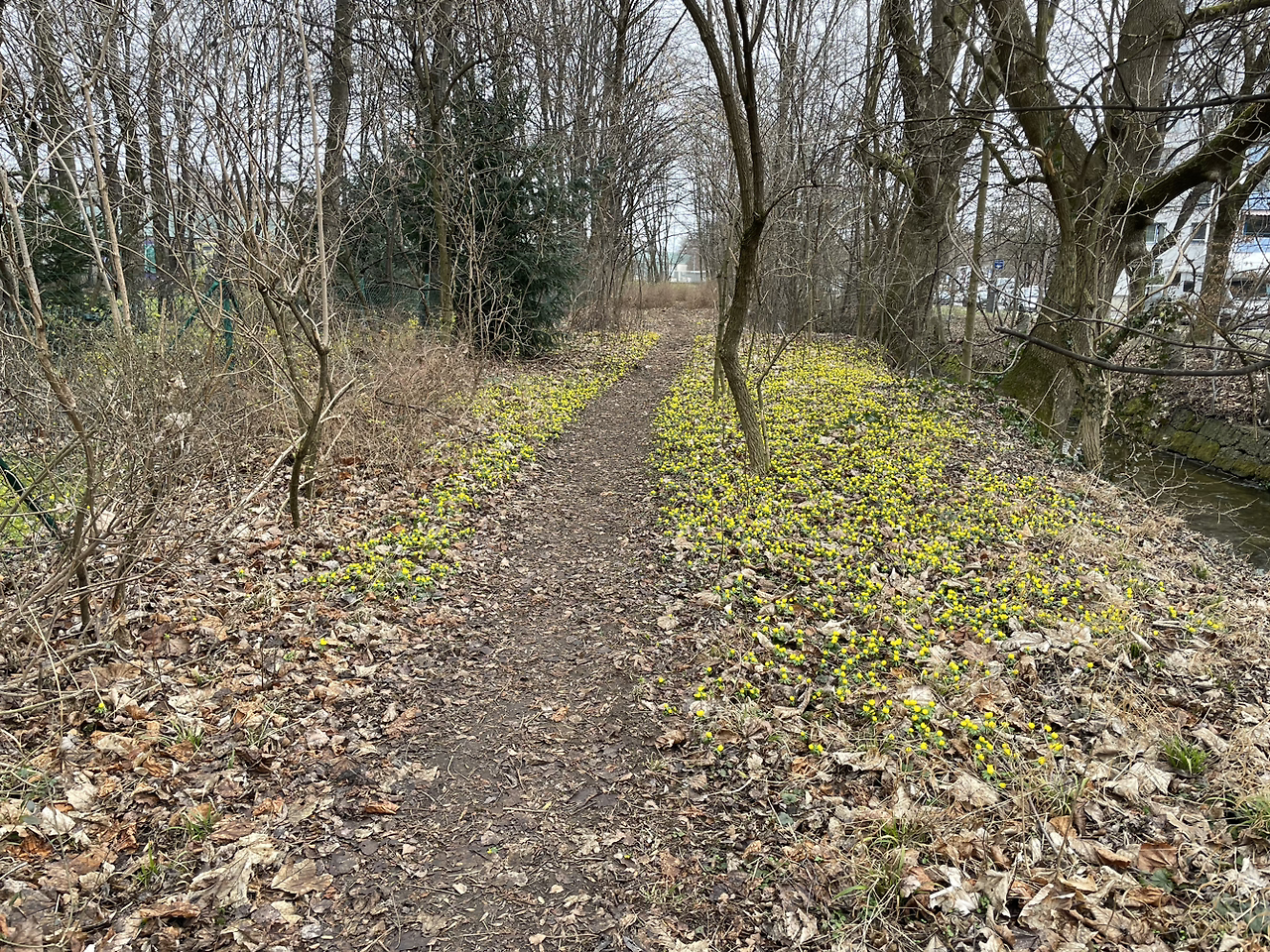 돌아가기 위해 개울 옆 오솔길로 들어서자 빨려 들어가 듯 발걸음도 이젠 가벼워진다. 폭신한 낙엽길을 감싸는 야생의 기운 그리고 펼쳐진 이른 봄꽃들의 향연, 작은 탄성이 나오고 말았다. 말로만 듣던 스노드롭(설강화), 크로커스, 복수초를 닮은 노란 겨울바람꽃이 지천이다. 그래, 너희들 보려고 여기를 왔구나! 기운 내야지... 낼 수 있을 것 같아.
