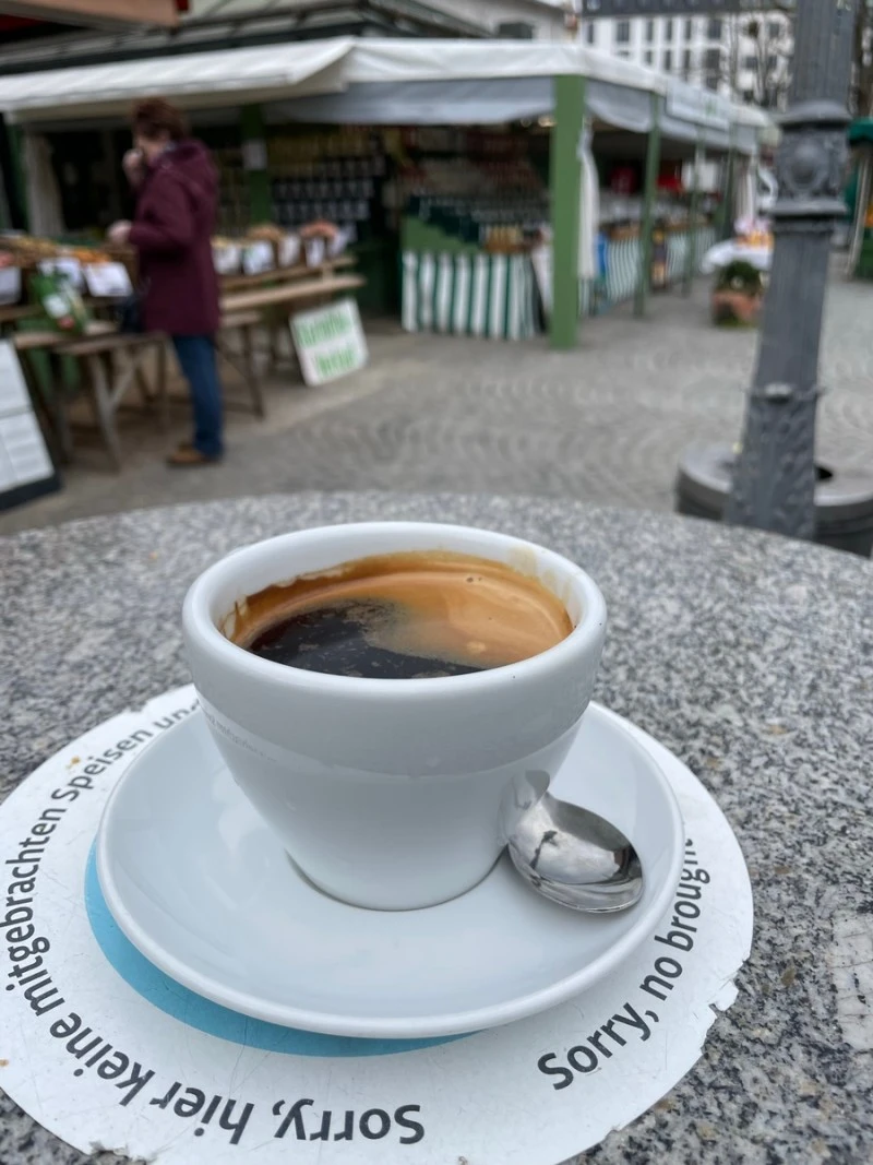 대신 근처 시장에 자주 들락거렸다. 빅투알리엔 마켓이라고 처음에는 관광지에 있는 고만고만한 시장이라 생각했는데 갈 때마다 새로운, 독일 현지인들에게 사랑받는 200년이 넘는 전통시장으로. 사람을 만나고 물건도 구경하고 이방인이 현지 생활을 관찰하기에 좋은 곳이다. 결국 꽃집 앞에 머무는 시간이 많았지만 그곳은 식재료와 먹거리가 풍성한 곳이었다. 나름 전통과 개성을 드러낸 온갖 종류의 식료품 가게들이 오두막처럼 곳곳에 즐비하다. 눈이 즐겁고 맛도 즐거울 수 있겠지만 입맛이 유연하지 못한 이방인은 마냥 그렇지만 않다. 먹음직스러워 보여 하나 사볼까, 선물로 하나 사갈까 싶다가도 또 뒷전이 될 거란 걸 알기에 선뜻 지갑이 열어지지 않았다. 필요해서 산 것은 노르웨이에서 온 것 같은 홍합과 구이용 닭 그리고 세계인의 맛 커피!