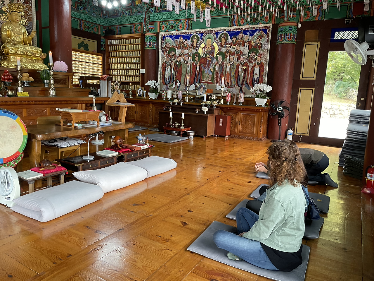 다음날은 가까운 산에 자리한 사나사라는 절에 갔다. 유명한 양양 낙산사를 다녀왔다지만 사람이 붐비지 않는 고즈넉한 산사를 보여주고 싶었다. 그 공간에 잠시 빠졌던 대웅전의 고요함이 두 사람에게 마음의 쉼표로 살아나기를. 우리 민간신앙 속 토속신 이야기를 할 수 있었던 삼성각과 벽화 '십우도' 앞에서 어쩌다 조왕신과 측신 이야기가 나왔다. 막 가을이 도착한 조붓한 산길 졸졸졸 흐르는 계곡물은 또 수다를 대신한다. 그림을 그리는 바넷사는 부지런히 야생화들을 찍고 있었다. 가을이 깊어질 이곳 모습을 사진으로라도 전해 달라는 부탁을 받으며 산을 내려왔다.