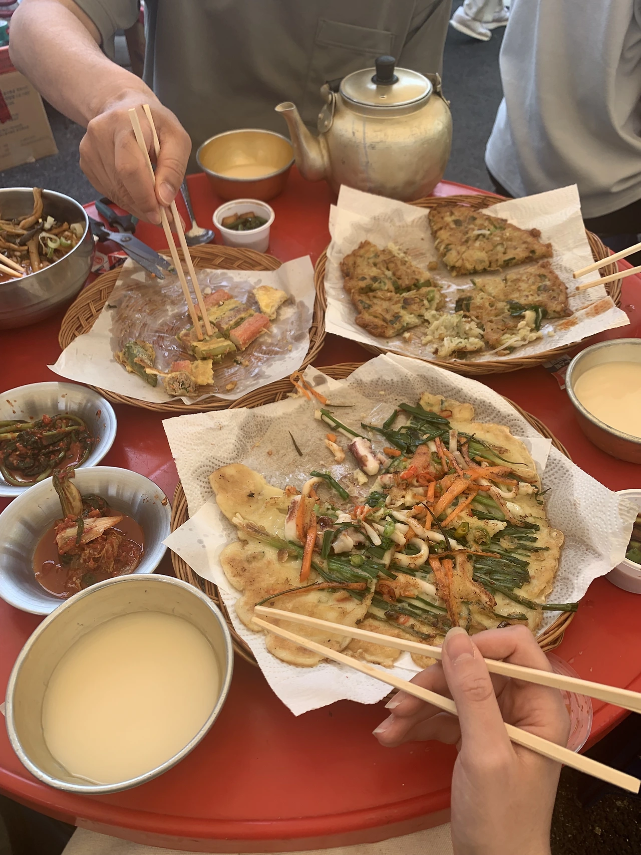 가는 날이 장날이라고 마침 왔던 날이 오일장이 서는 날이라 시끌벅적한 노천식당에서 파전, 빈대떡, 막걸리를 먹었다. 너무 좋아하더라. 덩달아 우리 오일장이 유럽 무슨 마켓 못지않은 특별한 공간으로 다가왔다. 바넷사는 부모님을 위한 도자기 머그잔을 흥정하며 샀고, 마누는 호떡맛을 아는지 줄서기를 자처했다. 문득 시골 오일장에 파란 눈의 아가씨들이 섞여있어도 하나도 어색하지 않은 누구도 서로를 의식하지 않는 풍경에 눈앞의 글로벌을 실감했다.