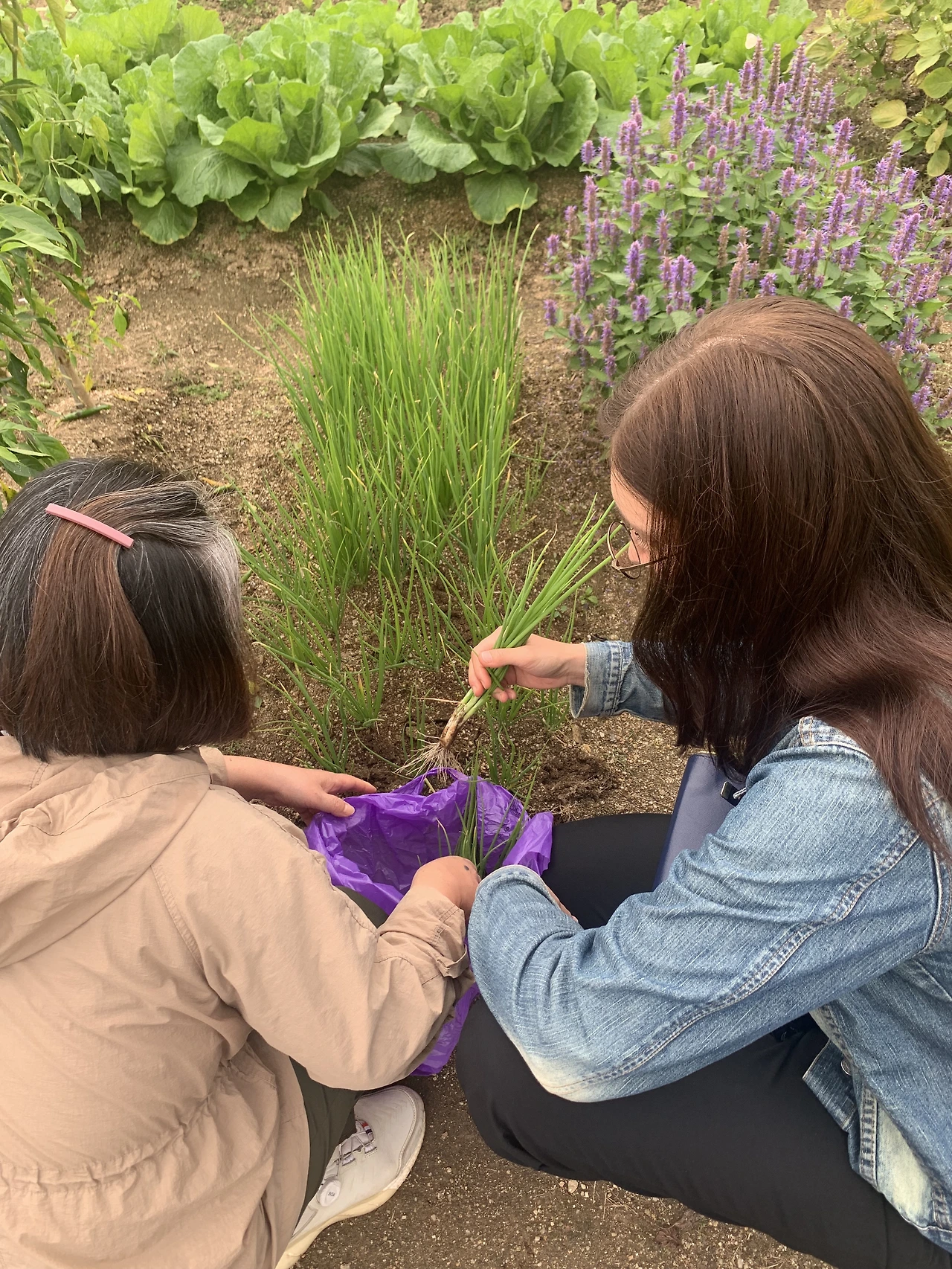 집에 들어와 조금 쉬었다 소기의 목적인 김치를 위해 텃밭으로 향했다. 함께 얼갈이배추와 쪽파를 뽑아와 간단하게 절여 겉절이 담는 법을 보여주었다. 마침 김장용 배추와 무가 조금 자라고 있어 김치의 정석인 김장 이야기를 해줄 수 있었다. 작년 묵은지랑 여름 고랭지 배추김치맛을 보이며 발효기간에 따른 맛의 변화를 비교해보기도 하고.
