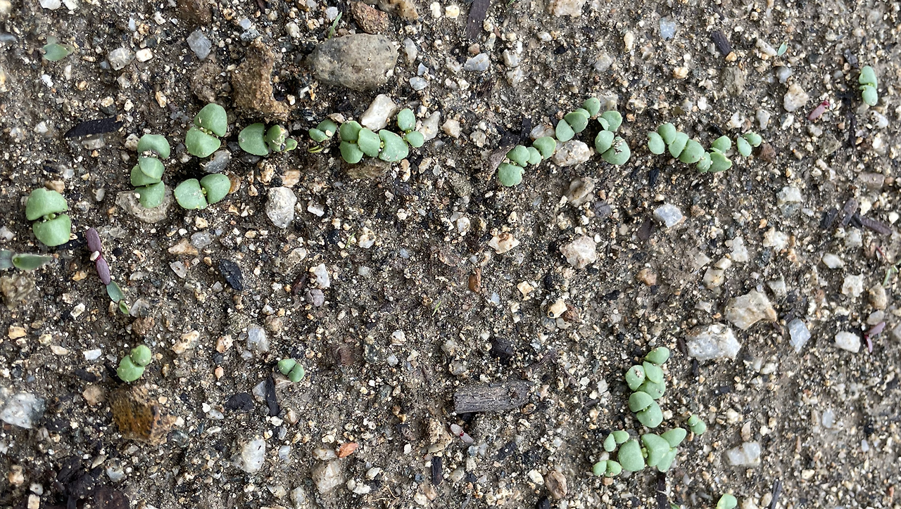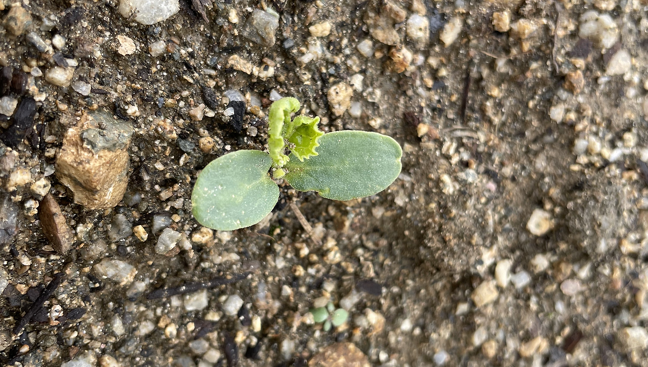 이것 또한 심지 않은 새싹인데, 아마 오이 호박 참외 같은 박과의 무엇인 것 같다. 키울까 말까. 모르고 키우는 것에는 조금 복잡한 마음이 든다. <아주 작은 씨앗> 그림책 속 의문의 씨앗을 심는 이의 의심과 기대감, 조바심, 기쁨처럼.