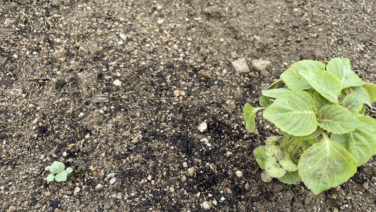 그러다, 앗, 나도 텃밭 하지.. 뒤통수를 긁는 기분으로 진짜 텃밭으로 나가 씨를 뿌려 놓고 쌈채소 모종을 몇천원치 사다 심어 놓았다. 자연이 아니기에 간소하게 간소하게.