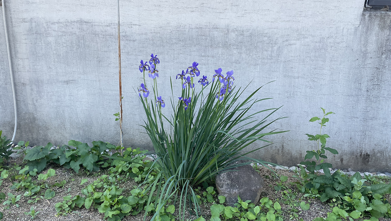 빛바랜 벽과 조화를 이룬 아이리스가 수묵담채화 주인공처럼 멋스럽게 앉았다.