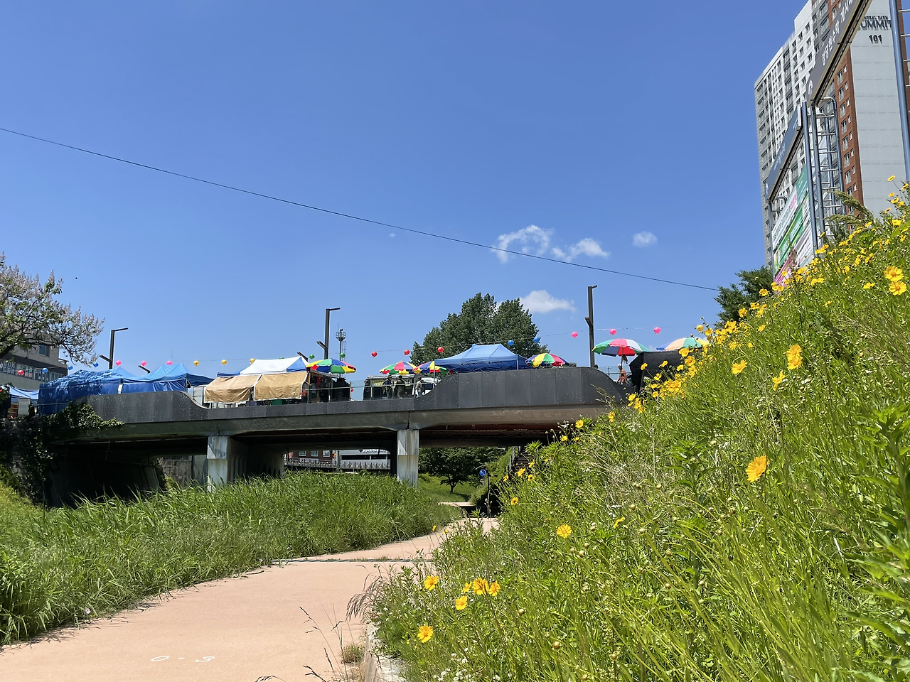 노란 금계국이 가는 날이 장날인, 마침 알록달록 오일장이랑 벗이 되었다.