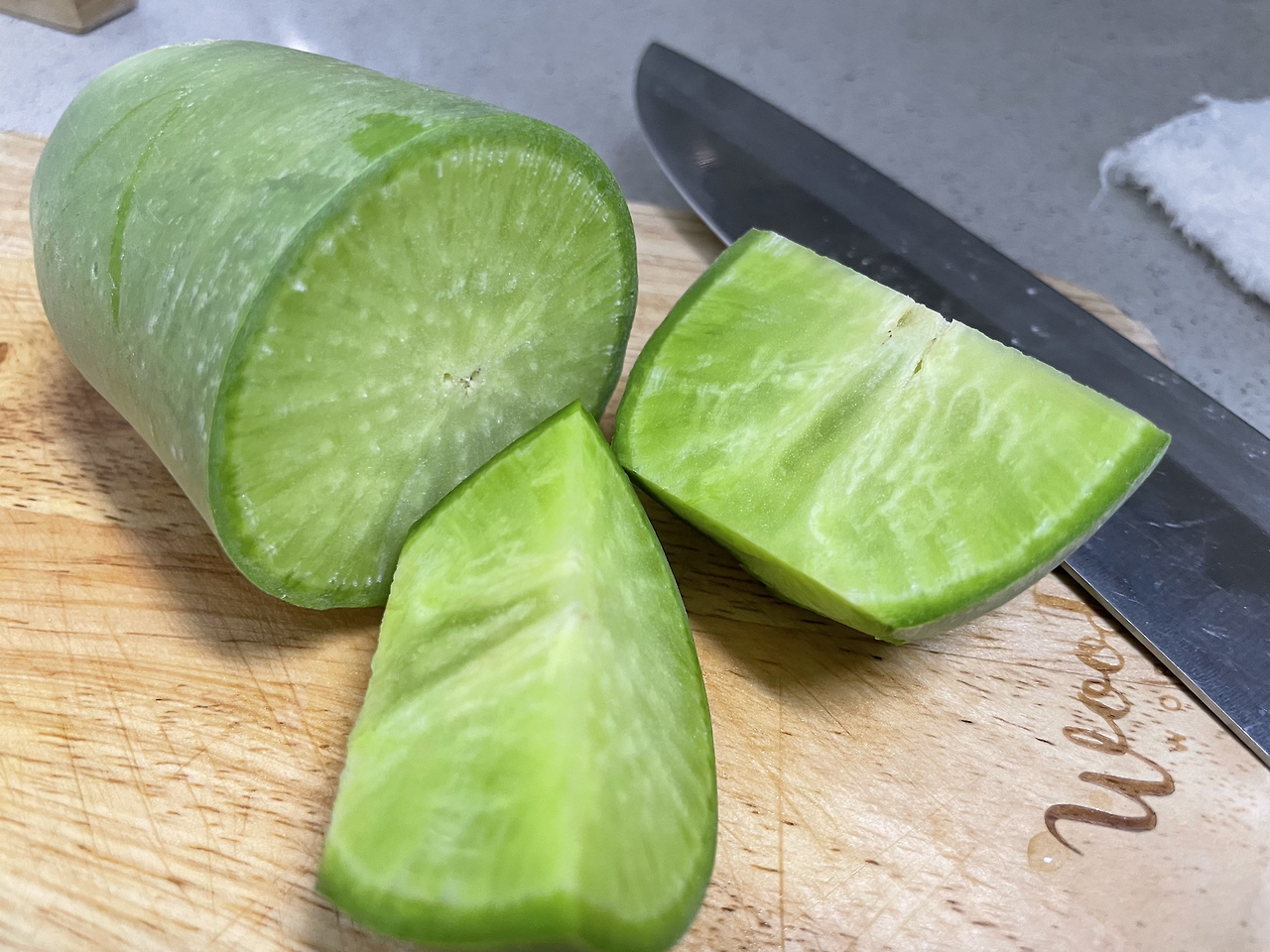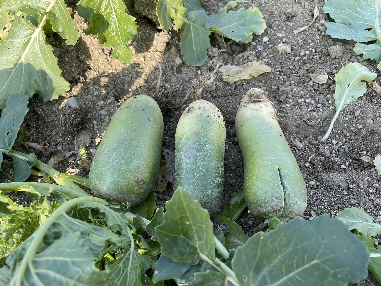 텃밭 모범인 금화 씨가 나누어준 초록무 모종이 이루어낸 가을은 여름의 싱그러움을 두르고 있다. 알고 보니 과일무라는데 반찬보다는 우적우적 그냥 씹어먹기 알맞다.