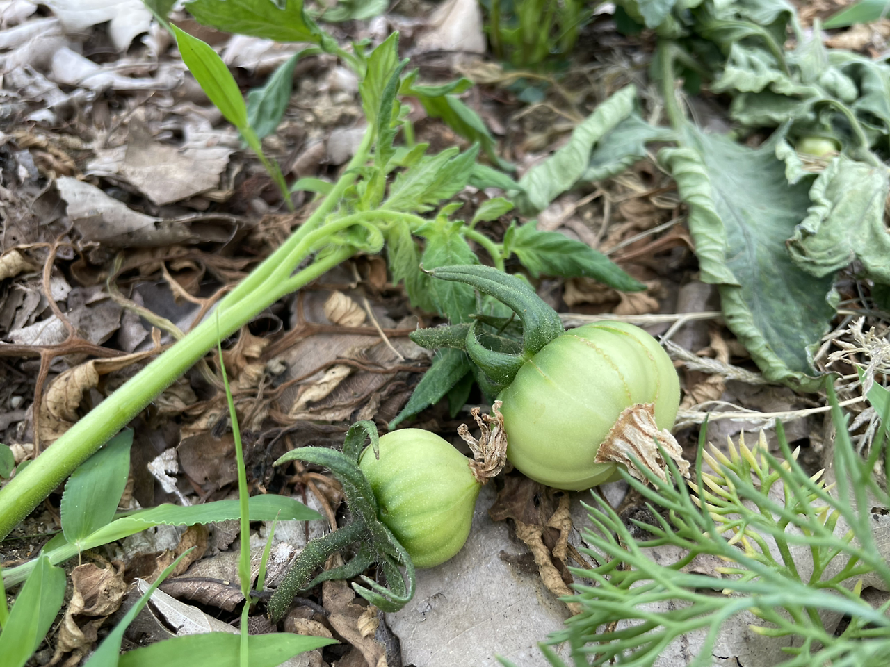 문제는 영양과잉, 질소과잉이었다. 전에 안 하던 낙엽멀칭이란 걸 해놓고 얼마나 뿌듯했던가. 기본으로 나오는 퇴비만 가지고도 별 탈 없이 키웠는데 올해는 과한 의욕을 부려 동티가 났나 보다. 사실 영양보다는 땅의 상태, 수분유지가 더 큰 목적이었지만 결과는 영양 과잉으로 추정되는 뜻밖의 현상이 나타난 것이다.
