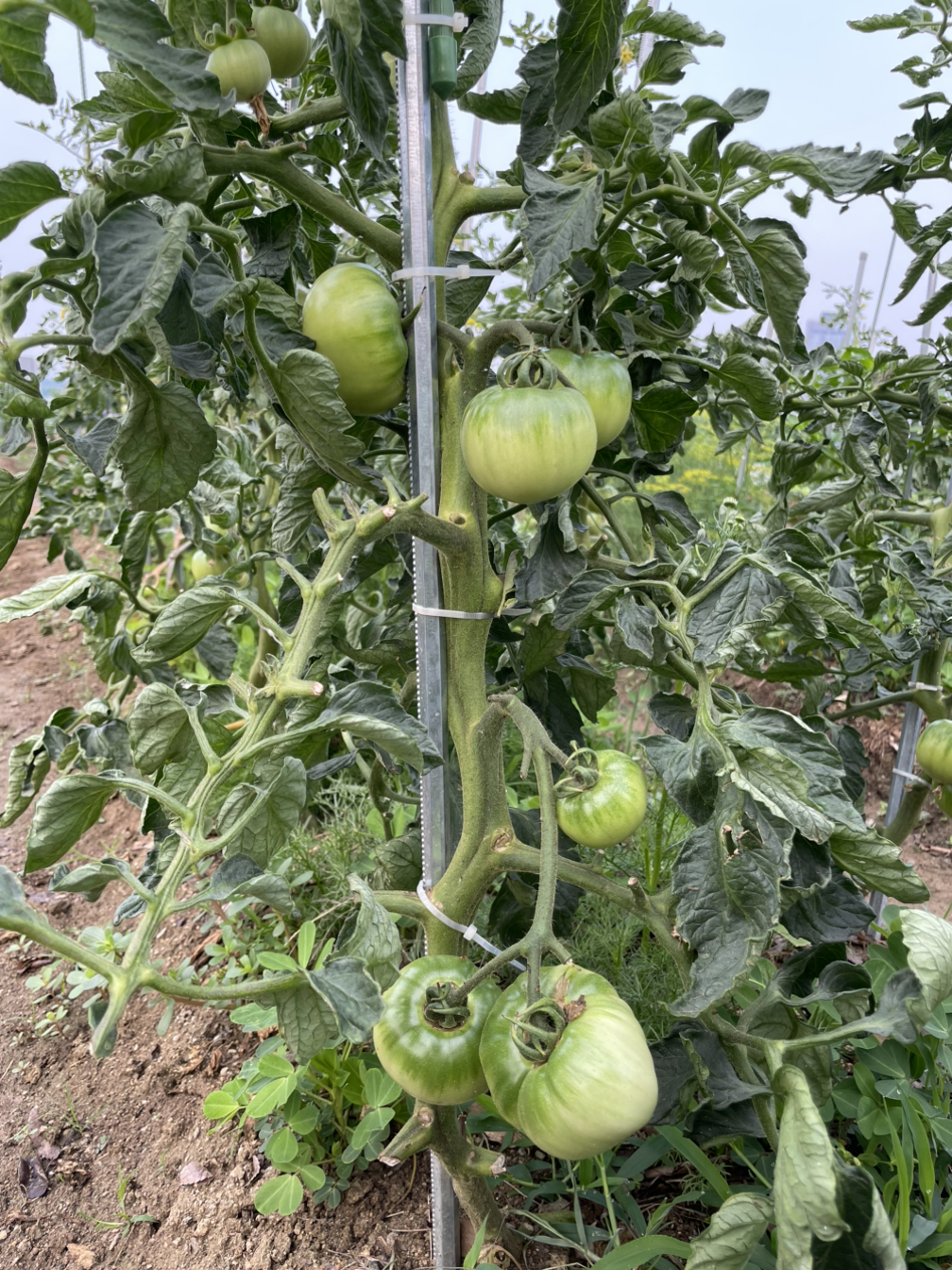의도가 듬뿍 들어간 오늘 아침 144번밭 토마토. 시작을 했으니 끝까지 가보는 수밖에. 그나저나 모레부터 벌써 장마라는데, 이래서 우리 기후에서는 노지 재배가 어렵다고 하는가 보다. 빗속에서 익어야 하다니.. 옛날 장마철에 빨래 말려 입 듯 사이사이 익어가길!