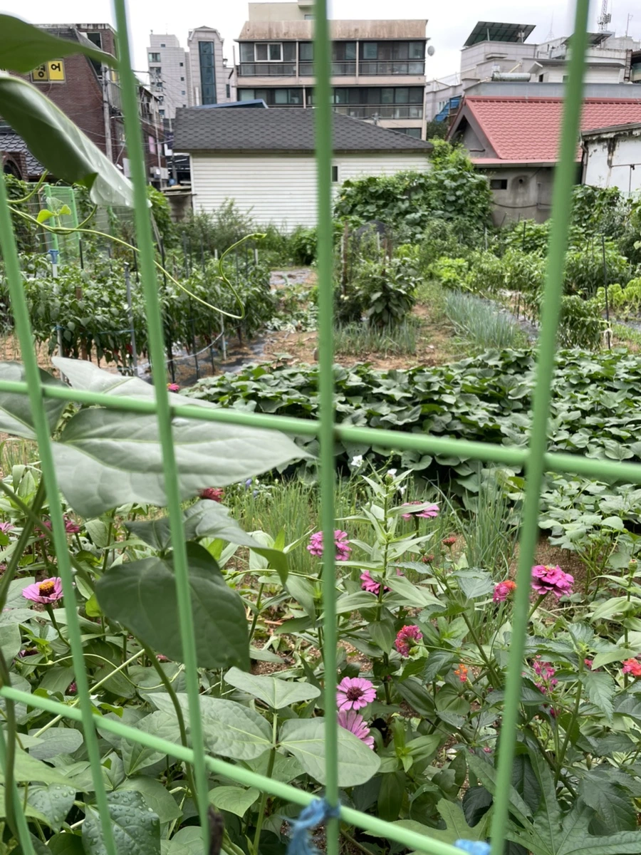 골목으로 들어서 남이 가꾼 화단과 텃밭을 구경하며