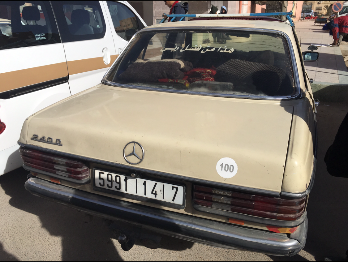 S class 가 나오기 전의 이 오래된 Benz 도 7명이 탄다. 조수석에 둘, 그리고 뒤자리에 네명이 탄다. 트렁크는 6인의 짐으로 가득하다. 뒤 트렁크에 240 D 라고 Benz 의 스펙이 아직 붙어 있다. 지금 바로 폐차해도 당연할 Benz 들이 Sahara 인근 지역을 신나게 달린다. 어찌나 흔하게 보이는지 전세계 Benz 는 이 곳 Morocco 에서 최후를 맞는 것 같다. 제 2의 인생 아니 제 3, 4 의 인생을 이곳에서 신나게 달리다 아마도 사고가 나서 많이 망가지면 할 수 없이 폐차를 할 것 같다.