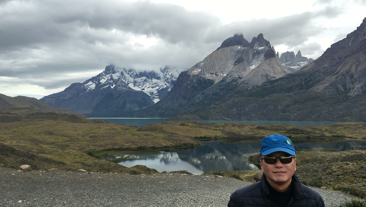 토레스 델 파이네는 안데스 산맥 남쪽지역 소위 파타고니아 칠레지역에서 가장 유명한 곳이다. 토레스가 tower 란 뜻이고 우뚝 솟은 세 개의 봉우리가 가슴이 저린 풍광을 만들어 내는 곳이다. 일정상 단 하루의 full day tour 만이 가능하여 산군의 남쪽면 만을 미니버스로 돌아보았다. 왕복 8시간의 트레킹이 소요되는 세 개의 타워는 포기하였다. Center tower와 South tower의 뒷면만을 멀리서 볼 뿐이다. 눈 앞에 3000미터의 봉우리가 눈을 이고 서 있다. 3000미터가 이 정도뿐인가 싶게 낮게 느껴진다. 독특한 Main horn 과 East horn 의 봉우리가 보는 각도에 따라 전혀 다르게 보인다.
