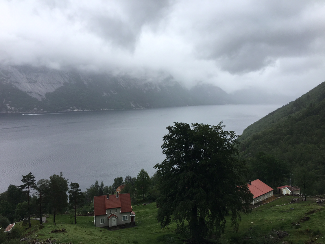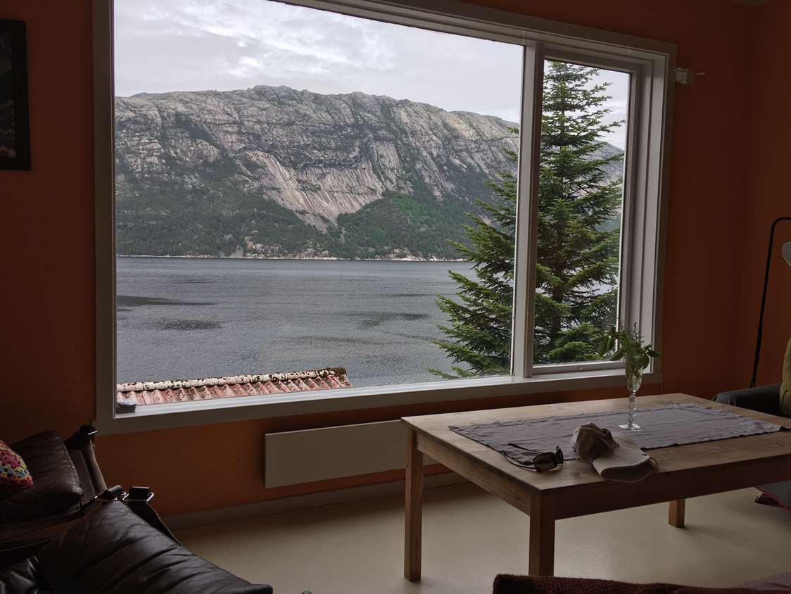 하루에 페리가 두번 들어오는 섬 아닌 섬 florli 에 갇히고 말았다. 안정된 잠자리를 어설프게 찾다가... 쉐락볼튼이나 프레이케스톨렌으로의 트레킹은 당일은 무리고 텐트를 갖고 1박2일로 해야 한다하여 포기했다. 온종일 통창으로 아름다운 Lyse fyord 를 보고 있다. 시시각각 날씨와 시간이 변하여 지겹지는 않다.