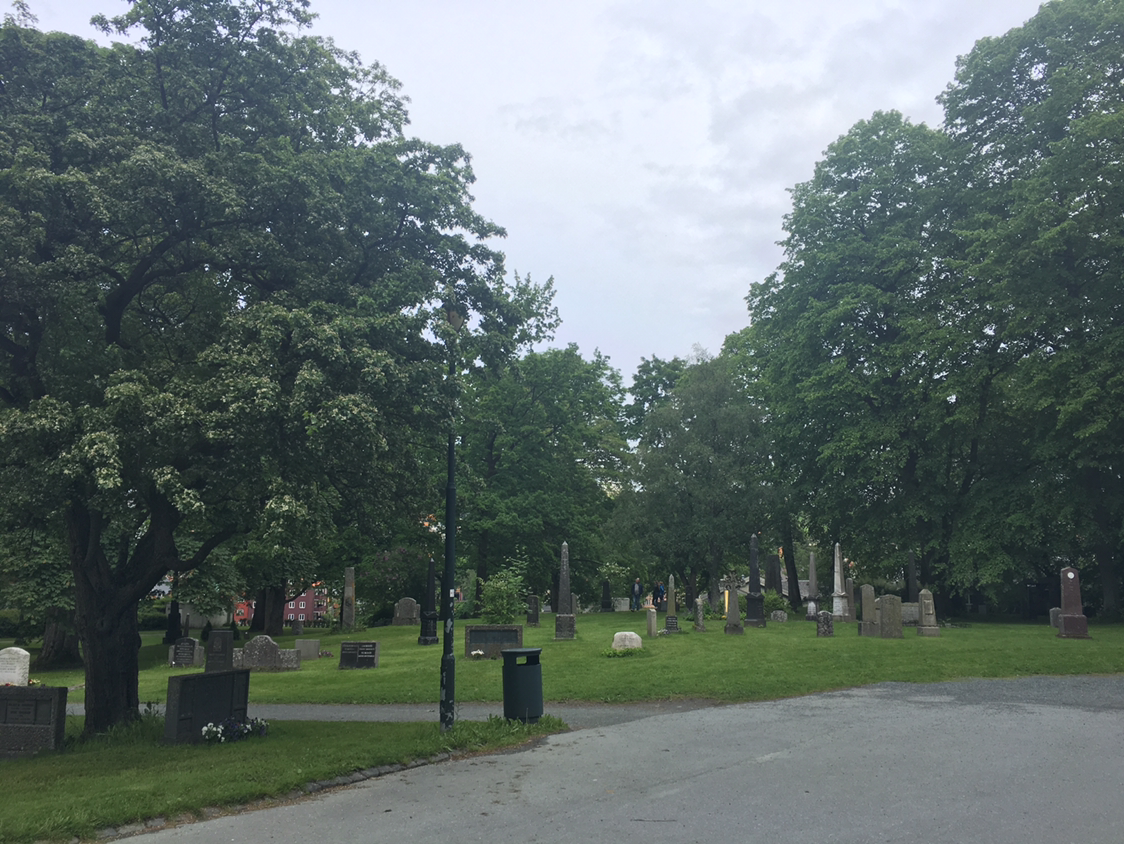 노르웨이 어느 마을에나 교회가 있고 교회 옆에는 묘지가 있다. 노르웨이 세번째 도시 트론헤임에는 근사한 니다로스 성당이 있다. 바로 옆에는 대주교가 살던 근사한 건물도 있다. 지금은 박물관이다. 수많은 묘비가 성당 주변에 있다. 묘비들과 어울린 성당 주변의 광경이 숙연함을 자아낸다. 망자들은 성당 옆에 묻히게 된 것을 엄청 좋아했을 것이다.