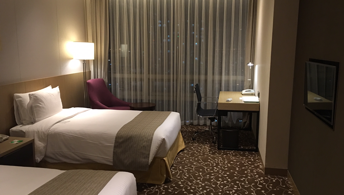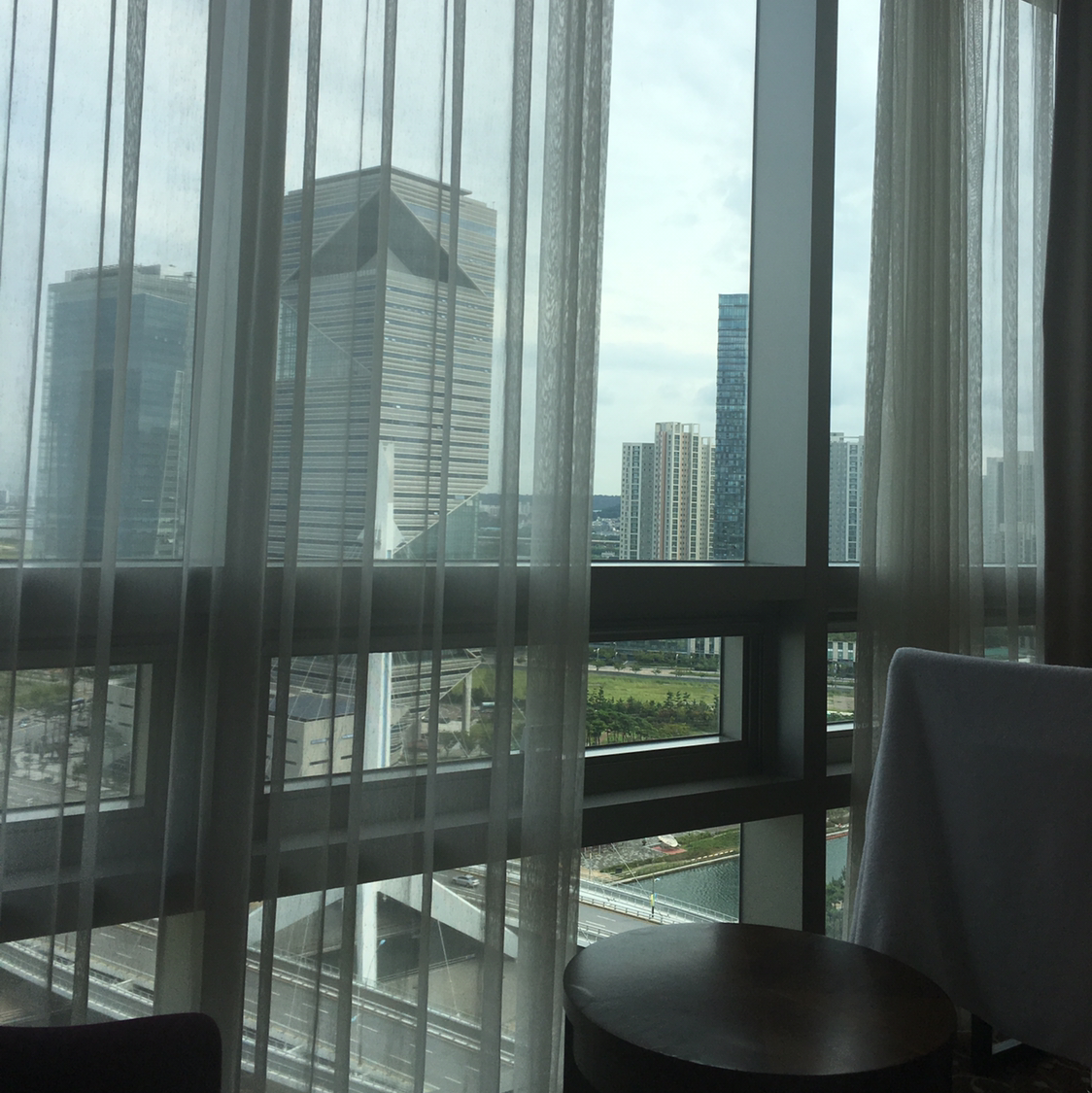 클락에서 비행기가 안왔단다. 비행기 고장으로 좀 늦게라도 출발하려 했으나 결국 결항되었단다. 그래서 타고 갈 비행기가 없단다. 이런 황당한 일이... 가까운 인천 송도에 있는 호텔로 승객들을 모시고 갈 버스가 곧 온단다. 비오는 밤 아홉시반에 인천대교를 건너 송도국제도시에 도착했다. 버스의 실내등이 켜지더니 Holiday Inn 앞에 버스가 섰다. 크고 깨끗한 트윈룸을 혼자 자라고 준다. 이 호텔은 꼭대기 층인 19층에 프런트와 식당이 있다. 밤 열시에 송도의 야경을 보며 항공사에서 제공하는 저녁식사를 했다. 아직 완성되지 않은 송도국제도시의 야경이 낯설다. 처음보는 경치다. 간간이 자동차만 다닐뿐 사람이 없다. 다음날 아침과 점심식사 후 두시에 공항으로 버스가 출발한단다. 오늘 오지 않은 비행기가 내일은 일찍 와서 다섯시에 클락으로 출발한단다.