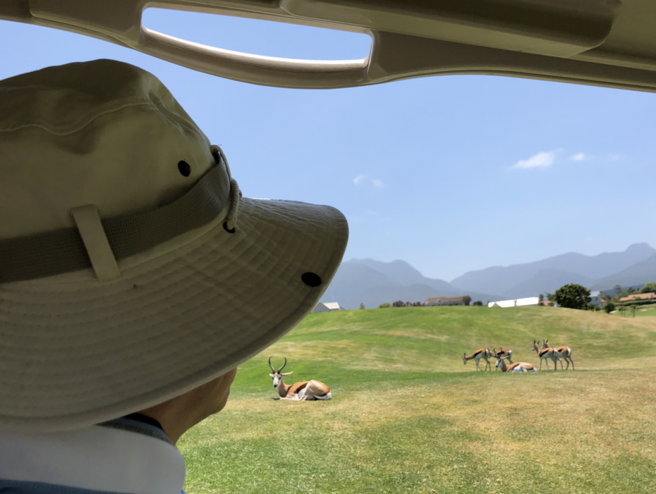 아주 딱딱한 그린과 좋은 mountain view 가 일품이다. 페어웨이에 우리나라 사슴이나 노루에 해당하는 springbok 무리가 한가로이 풀 뜯고 있고 코스 주변으로는 역시 그림 같은 집들이 둘러싸고 있다. 스코어도 86을 기록하여 아주 만족스러운 골프를 쳤다. 그런데 골프를 마치고 주차장으로 이동하여 골프채를 렌터카에 실어야 하는데 아주 난감한 상황이 벌어졌다.