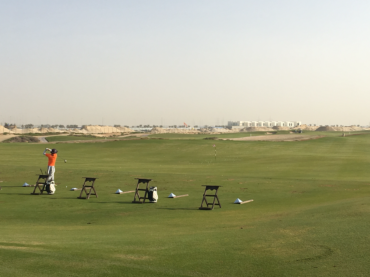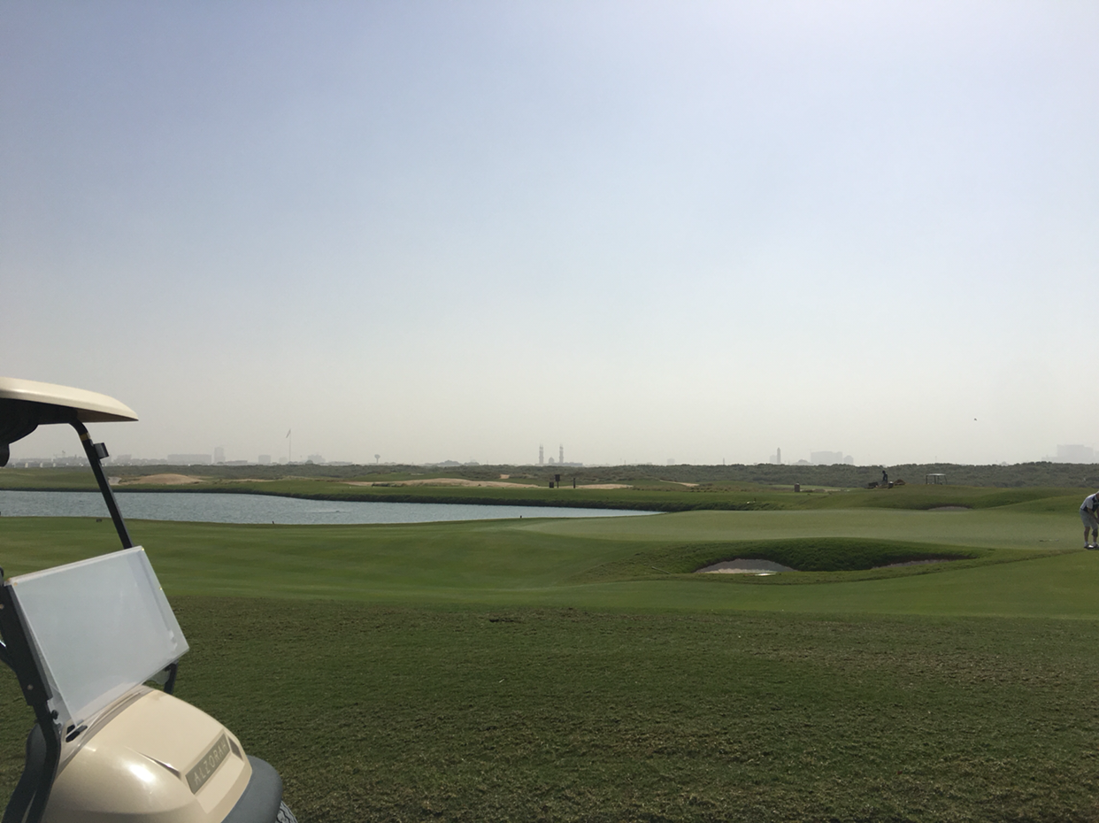 두바이 시내에 유명한 골프장들이 몇개 있다. 한번 치는데 일인당 500불이 넘는다. 뜻이 있으면 길이 있다고... 두바이에서 북쪽으로 사르자를 지나 60 km 정도 가면 Al Zorah golf club 이 있다. 골프장 주변에 잔뜩 주택을 지어놓고 지금 한창 분양중이다. 그래서 골프장도 프로모션 중이다. 카트 포함 일인당 90불 정도이다. 바다와 면한 사막 끝자리에 엄청난 푸른 잔디를 심어 놓았다. 골프를 치는 중에도 스프링쿨러로 열심히 물을 공급한다. 심지어 연못도 있다. 거의 완성된 하얀 집들이 골프장 주변을 둘러싸고 있다.