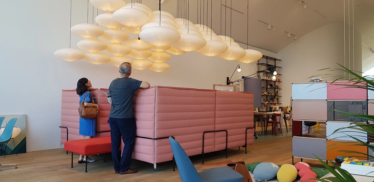 한층을 내려오면 Vitra 의 명품 의자들을 소개한다. 디자이너의 사진과 함께 영어로 설명이 있다. 의자들이 예술작품이 될 수 있다는 것을 보여준다. 이 의자들이 처음 사람들에게 소개되었을 때, 사람들의 반응이 궁금해진다. 이제는 흔하게 본 듯한 의자들이지만...
