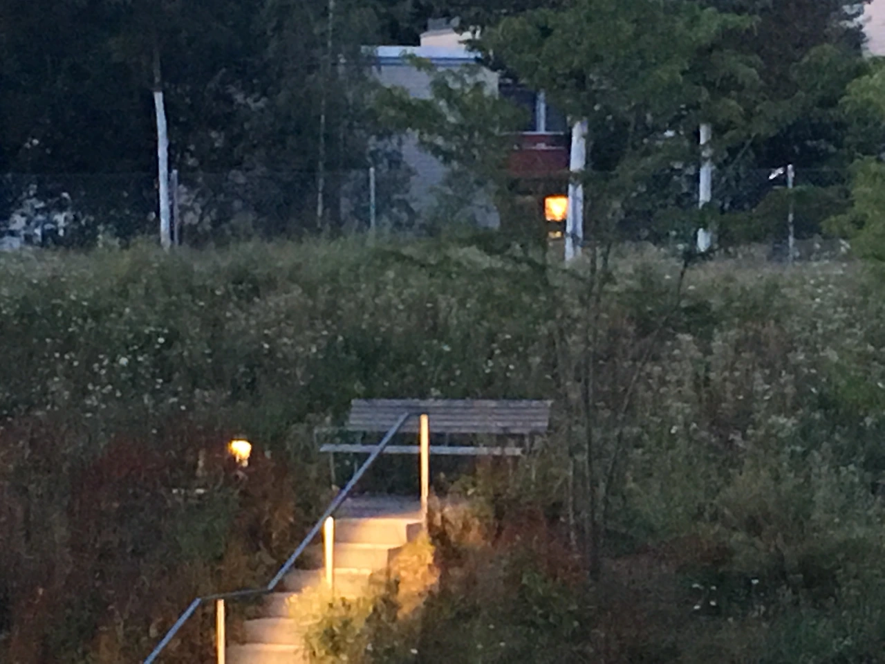 요양원의 동쪽으로는 건물 2층 높이의 언덕이 있고 언덕 중간에 긴 벤치가 서쪽을 바라보며 하나 있다. 테라스의 높이와 벤치의 높이가 비슷하고 중간에 가려주는 나무도 없어 30미터정도 떨어진 벤치가 테라스에서 아주 잘보인다. 테라스에서 늦은 저녁을 하다 보면 항상 그 벤치를 할아버지 한분과 할머니 한분이 차지하고 있다. 아마도 요양원에서 식사를 하고 벤치에서 저녁노을을 감상하시는 것 같다. 어두워지기 전까지 두세시간은 앉아 계신다. 거의 대화도 없이 같이 서쪽하늘을 보고 있다. 하루는 할머니 혼자 앉아 계시길래 괜히 안타까운 마음이 잠깐 들었다. 보행보조기를 밀면서 할아버지가 나타나실 때까지...