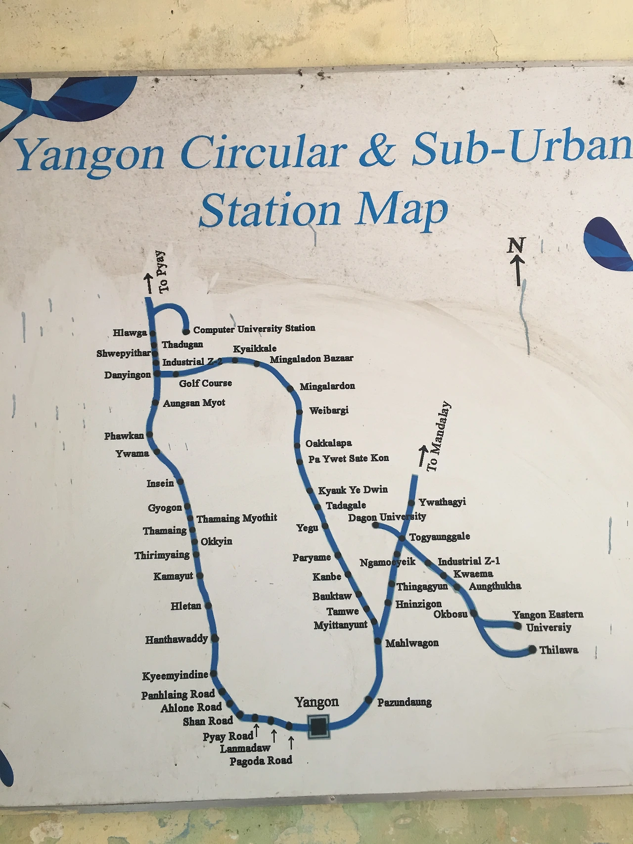 미리 오프라인 지도를 다운 받으면 와이파이 없이도 내가 어디 있는지를 구글맵이 보여준다. 자주 들여다보면 내가 묵고 있는 호텔이 어디 있고 기차역까지 제대로 걷고 있는지 얼마나 남았는지를 알 수 있다. 스마트폰의 배터리가 방전되지 않는다면 길을 잃을 가능성은 없다. 이동에 자신이 생긴다. 구글맵이 미얀마에서 주님을 대신하여(?) 나를 인도하고 있다. 아무리 넓더라도 2차원 공간에서 나의 존재를 리얼타임으로 확인해준다. 다섯 정거장을 가면 양곤 중앙역에 도착하고 지금 지나고 있는 역이 무엇인지도 항상 알려준다. 애매모호하고 낯선 상황에서도 전혀 불안해할 이유가 없다. 결코 길을 잃고 헤맬 리 없기 때문이다.