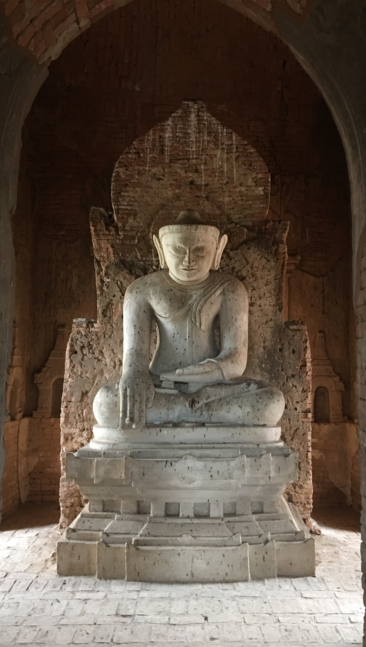 두 번째 파고다로 향했다. 파고다에 도착하니 중국인 젊은 남녀가 이미 위에 올라 열심히 사진 찍고 있다. 주변에 미얀마 청년이 있다. 저 친구가 안내한 것이 틀림없다. 미조가 미얀마 청년과 대화를 하는 것으로 보아 아는 사이다. 나도 탑에 올라 사진 몇 장 찍었지만 아까 찍은 것이나 비슷하다. 미조가 세 번째 파고다도 가겠냐고 묻는다. 아니 됐다고 했다. 그러자 파고다 정 중앙의 부처님 앞으로 나를 안내한다. 그녀는 어디서 꺼냈는지 둘둘 말은 천 위에 그린 그림을 여러 장 꺼낸다. 옛날 인도에서 많이 보던 그림이다. 모래로 그린 그림이라며 하나만 사달랜다.