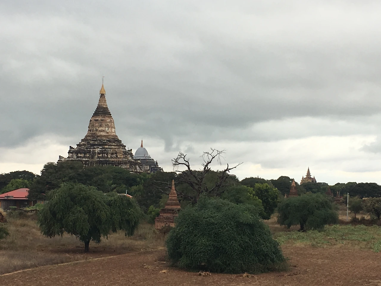늦은 점심을 때우자(나는 여행 중에는 음식이 제일 문제다.) 비가 그쳤다. 미얀마의 최대 관광지 바간에서 이렇게 개기기만 할 수 없을 것 같아 전동스쿠터(여기선 e-bike 라 한다.) 타기로 마음먹었다. 전동스쿠터는 난생처음이다. 헬멧을 쓰고 오른손 핸들을 돌리니 부드럽게 나간다. 아주 쉽다. 한번 충전으로 25킬로 간다는데 중간에 배터리 다 방전되면 어쩌지 하는 불안감이 잠시 스친다. 내가 묵고 있는 어메이징 바간 리조트는 좀 외곽에 있다. 근처에 골프장 말고는 아무것도 없다.