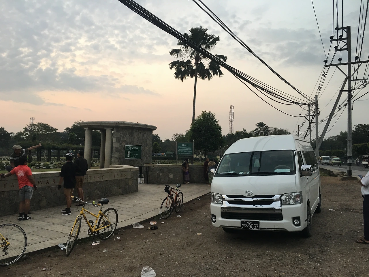 영어 가이드 젠과 운전기사 조조가 신형 도요타 하이에이스로 아침 6시 10분에 호텔로 픽업하러 왔다. 이미 차에는 독일 커플과 한국 초등학교 여선생님, 싱가포르 여인(은행 감사를 위해 몇 주 양곤에 머문단다), 대학을 휴학하고 7개월 여행 중인 독일 청년이 타고 있었다. 제일 뒷좌석에 앉을 수밖에 없다.