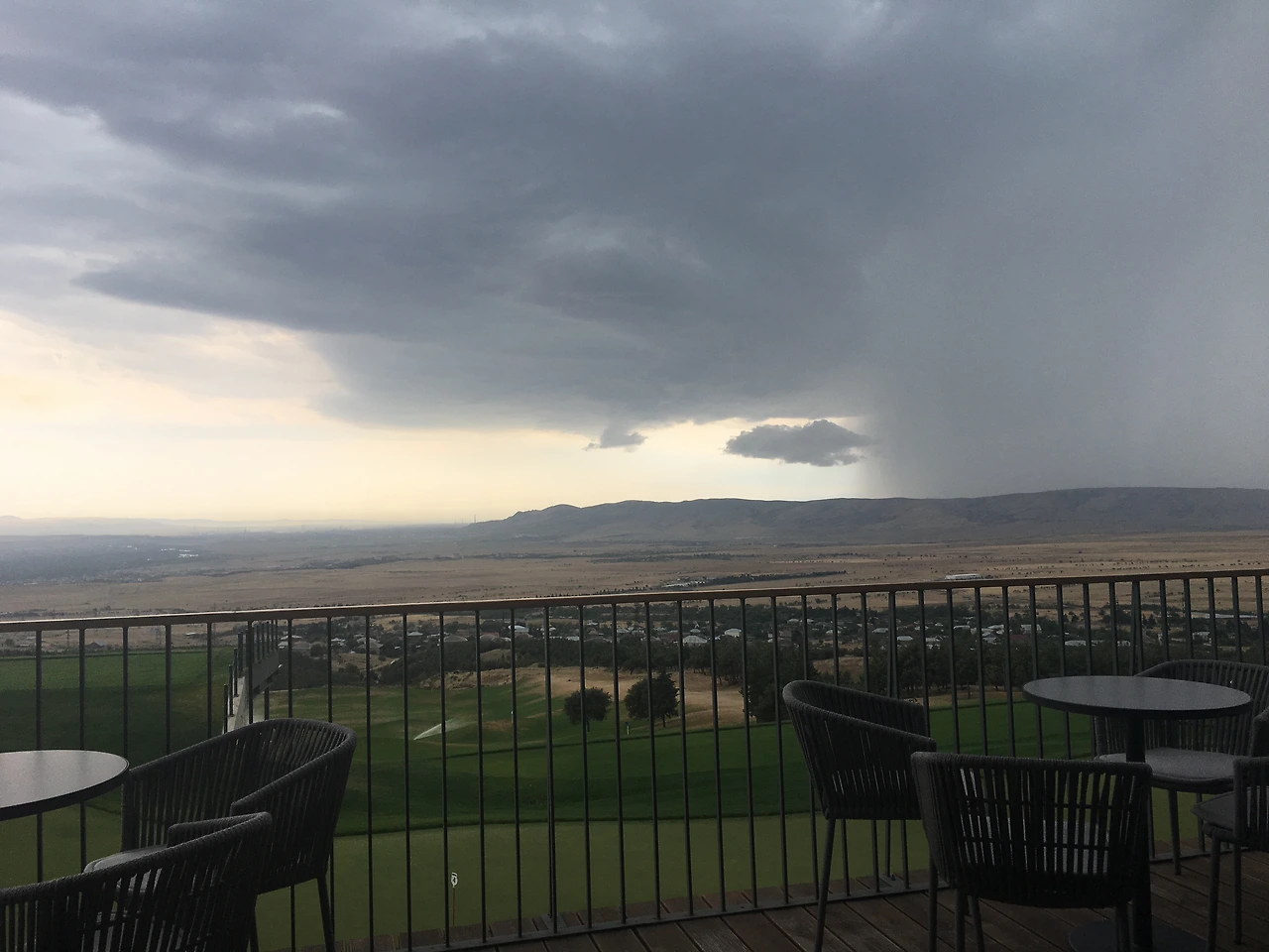 샤워를 하고 클럽하우스 테라스에서 맥주와 함께 보는 전망이 끝내준다. 조지아의 들판이 저 멀리 내려다 보이고, 좌측 하늘은 밝은데 우측 하늘은 검은 구름과 함께 비가 쏟아지고 있는 것이 보인다. 가끔 번개 치는 것도... 높은 곳에서 내려다보는 전망이 대부분 좋다. 그래서 사람들이 그렇게 열심히 산을 오르는 것인지도 모르겠다. 새의 눈으로 보고 싶어 스카이다이빙, 패러글라이딩 및 열기구 투어가 그렇게 인기 있는 액티비티가 된 것이리라.