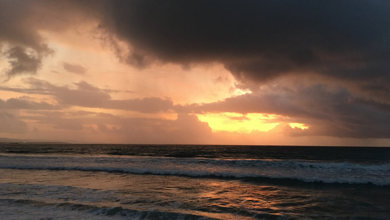 덴파사 공항에 내려 가까운 Kuta beach 근처에서 3박 했다. 서핑이 유명한 Kuta beach 인근은 엄청 복잡하다. 해안도로는 종일 차들로 메워져 있고, 술집, 음식점, 기념품 가게, 마사지샵 등에 사람들이 넘쳐난다. 주로 호주 관광객이라는 백인들도 많고 중국인들도 많이 보인다. Kuta beach의 일몰이 유명한데 첫날은 바람이 엄청 불어 바닷가 근처에도 나가지 못했고, 다음 날은 구름이 많이 끼어 구름 사이로 붉고 노란 여명을 보았다. 일몰은 언제 어디서나 항상 새롭다. 그리고 아름답다 못해 우아하다.