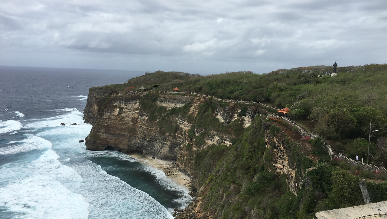 Kuta 지역에서 23킬로나 떨어진 Uluwatu temple을 가기 위해 Grab bike를 불렀다. 보통의 스쿠터 뒷자리에 올라타고 45분을 갔는데 요금이 우리 돈으로 5000원 정도다. 보통은 왕복 2차선 도로이고 어쩌다 왕복 4차선 도로를 달렸다. 헬멧을 쓰고는 있지만 스쿠터 뒷자리에서 떨어지거나 스쿠터가 넘어지면 사망할 수도 있겠다 싶다. 잔뜩 긴장될 수밖에 없다. 사원의 입구가 보이자 더 이상은 갈 수 없다며 내리란다. 나중에 알고 보니 Uluwatu 지역은 Grab drop 은 되지만 pickup 은 안 되는 지역이란다. 지구촌 곳곳에서 Uber 나 Grab 같은 서비스의 저항이 심각함을 느낀다.