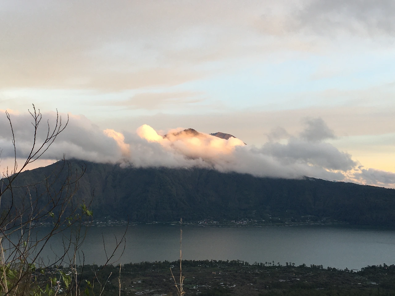 Volcano Batur는 해발 1400미터에 위치한 주차장에서 한 시간이면 오른다. 관광객들이 산 정상에서의 일출을 보기 위해 많이 오른다. 산 정상에는 일출을 편히 볼 수 있는 긴 의자들이 많이 설치되어 있다. 그리고 커피 같은 음료를 파는 움막 같은 시설들이 정상 주변에 많다.