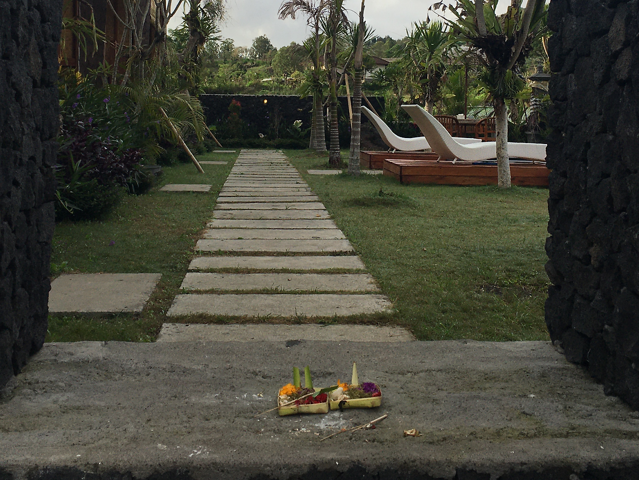 집집마다 힌두교의 신을 모시는 장소가 있다. 마당 한쪽 모서리에 보통 자리 잡고 있는데 작은 경우는 우리나라 절의 석등 만하고 석등의 두배 높이의 탑처럼 만들어진 곳도 많다. 발리인들은 매일 아침저녁으로 이 곳에 무엇인가를 바친다. 꽃 장식한 바구니도 있고 음식물도 있다. 그리고 집 대문 앞에도 꽃장식과 음식을 놓는다. 아무리 예쁜 꽃이라도 사람들 발길에 치이면 쓰레기일 뿐이다. 그래서 사람 왕래가 많은 골목길에는 꽃 쓰레기가 널려 있다. 저녁에는 향도 피운다. 불교가 힌두교의 영향을 많이 받아 한국사람에게는 제법 익숙하다.