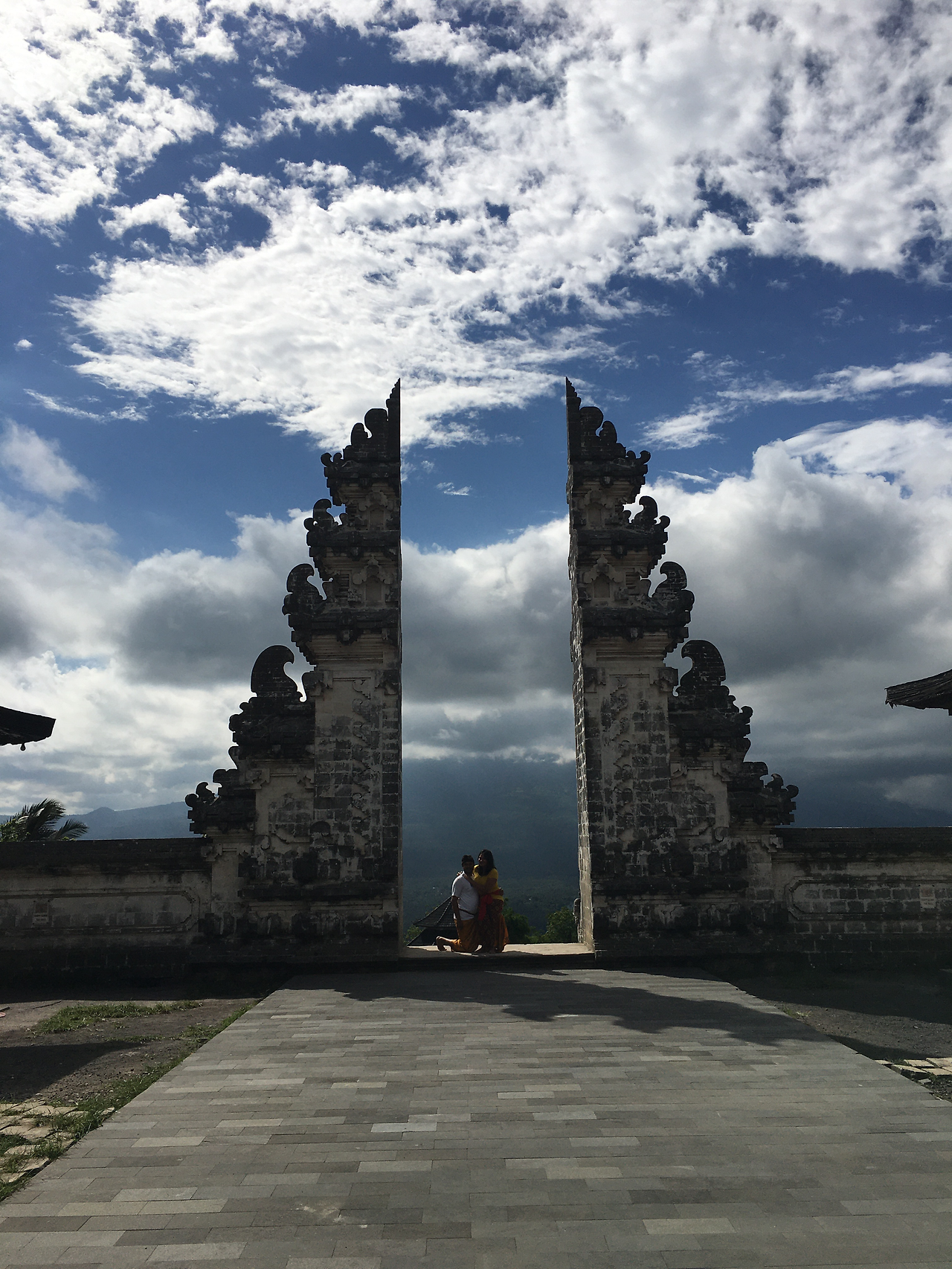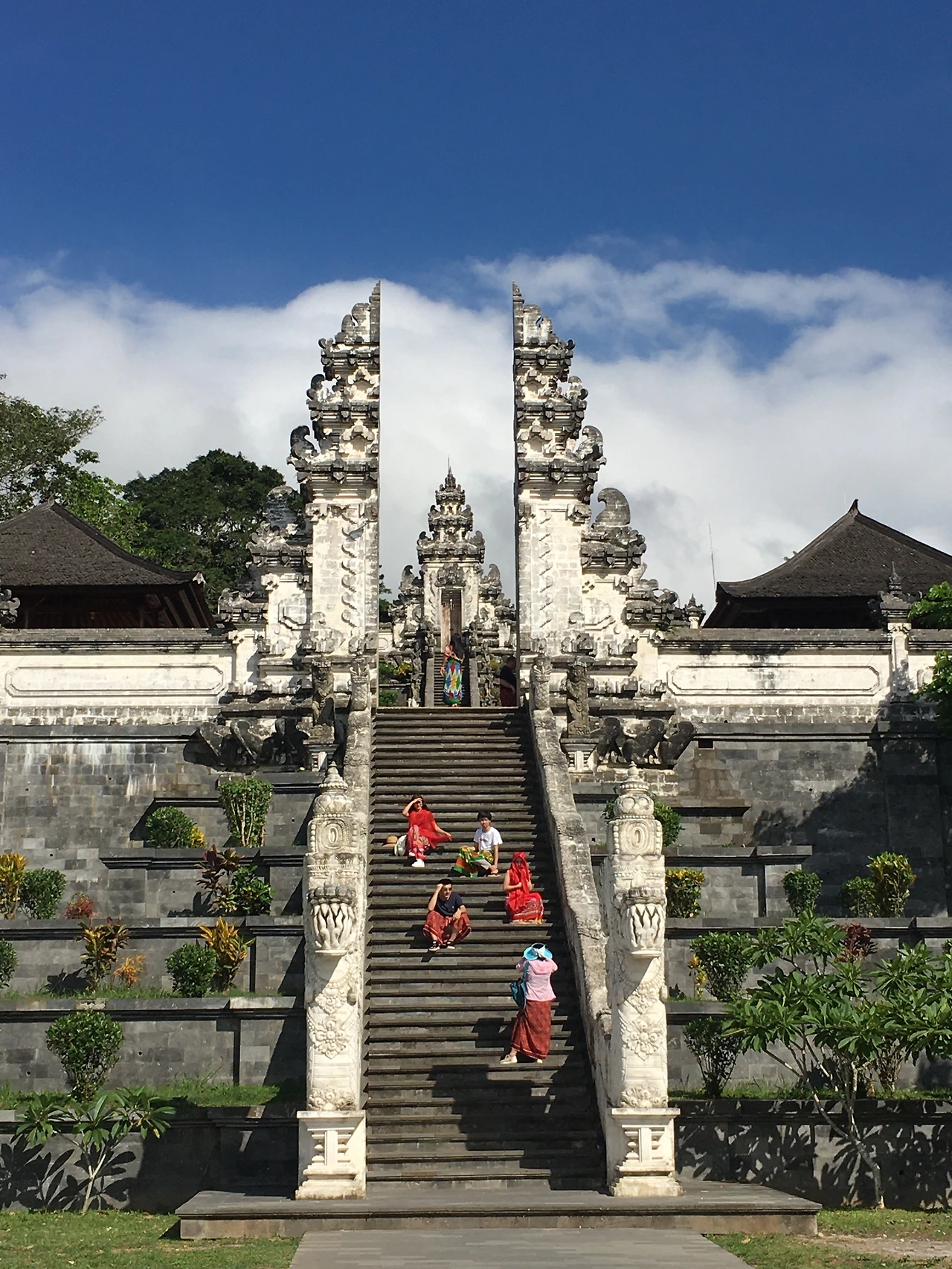 산길을 한참 달려 렘푸양에 왔다. 해발 600미터는 되는 것 같다. 산길이 엄청 꼬불꼬불하고 경사도 심하지만 인적이 없어 운전하긴 쉬웠다. 이런 곳에서 혼자 다니다 사고라도 나면 황당하겠다 싶다. 렘푸양은 핫플답게 사람들이 많다. Volcano Agung의 정상 방향으로 사원의 입구가 있다. 오후엔 구름이 끼어 Agung 정상은 안 보인다. 사원의 입구를 뜻하는 두 개의 기둥 사이에서 사진 찍는 것을 젊은이들은 인생 샷이라고 한다. 번호표를 나눠준다. 순서대로 자신의 카메라로 사진을 여러 장 찍어준다. 수십 명이 사진 찍기 위해 대기 중이다. 온갖 자세를 다 취한다. 요가 자세는 안된단다. 한 시간은 족히 기다려야 할 것 같다. 당연히 난 인생 샷 안 찍었다.