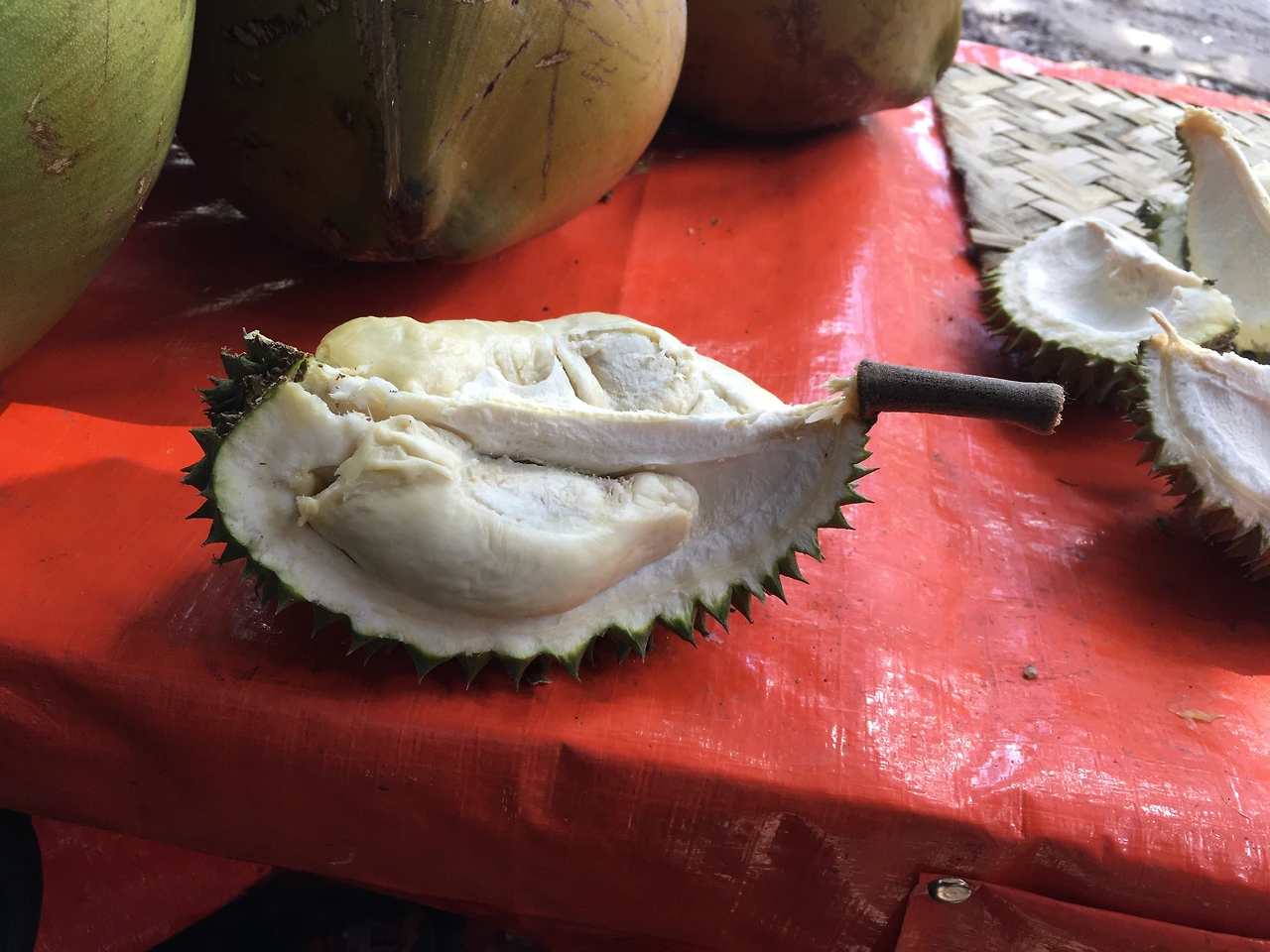 워낙 관광객이 몰리는 곳이니 근처 가게들도 많다. 두리안이 보인다. 내가 혼자 먹을만한 작은 두리안은 우리 돈으로 이천 원이다. 이즈음 중국 사람들이 두리안 맛을 알아 동남아 두리안이 동났다는 기사를 본 적 있다. 어떤 한국 남자가 태국에서 두리안을 너무 많이 먹어 쓰러져다는 기사도 기억난다. 두리안 상태는 좋았다. 그러나 맛있는 줄은 모르겠다. 필리핀에서도 몇 번 경험했지만...