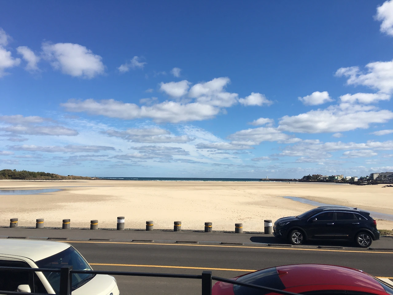표선해수욕장이 잘 보이는 장소에 롯데리아가 홀로 있다. 물이 빠져 엄청난 백사장을 드러내고 있는 바다를 보면서 혼자 아침 겸 점심을 먹었다. 오늘도 날이 너무 좋다.