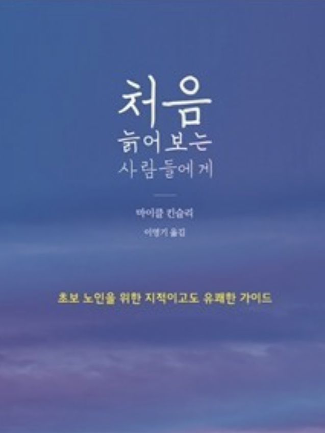 '처음 늙어보는 사람들에게'란 책은 42세 한창 일할 나이에 파킨슨병을 진단받은 '마이클 킨슬리'란 미국의 정치 칼럼니스트가 쓴 책이다. 파킨슨병을 진단받고 20여 년 동안 남들보다 일찍 늙어가며 깨달은 것을 정리한 책이다. '초보 노인을 위한 지적이고도 유쾌한 가이드'란 부제가 붙어 있다.