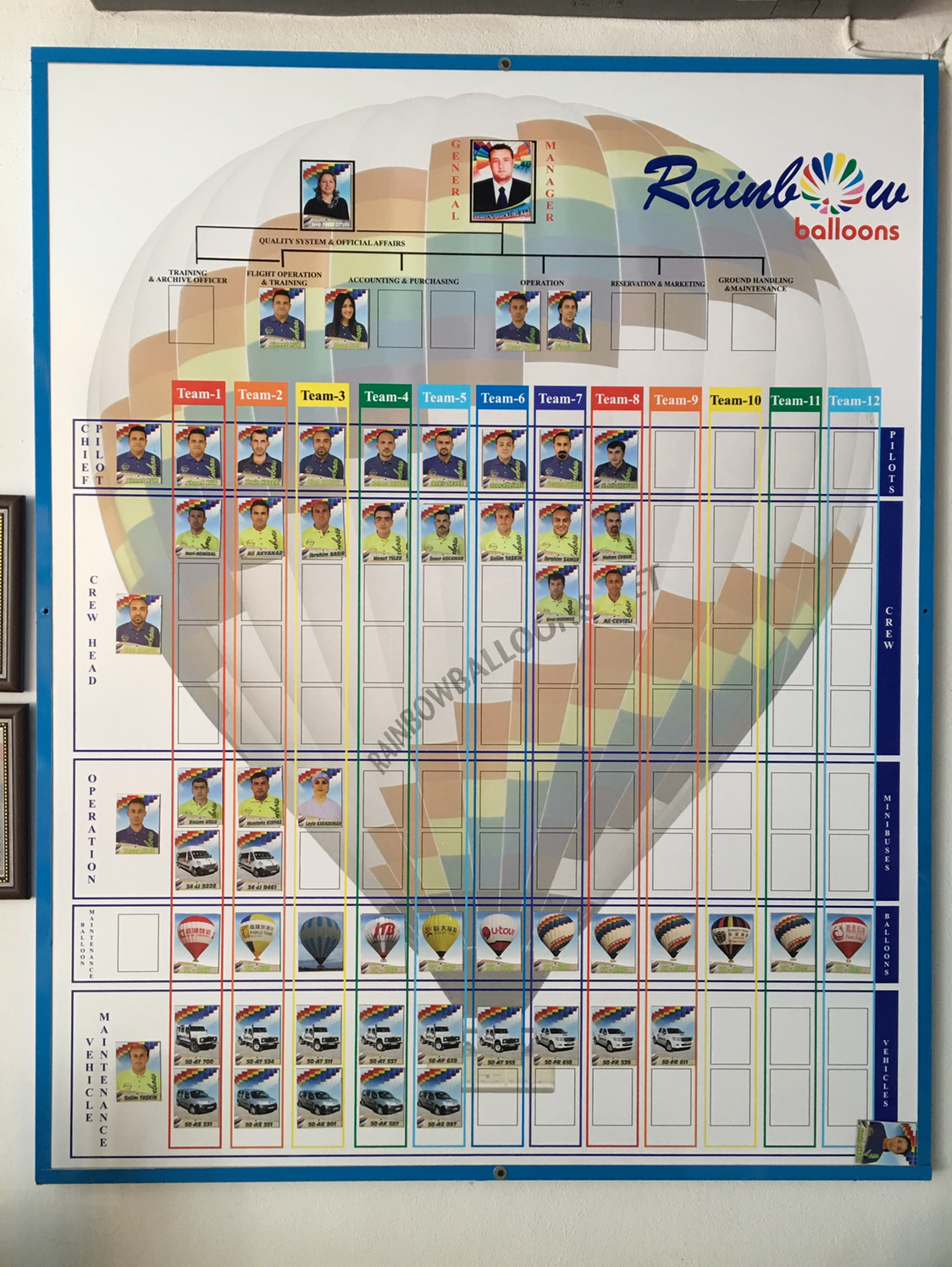 열기구가 무수히 떠오르는 멋있는 사진을 본 사람이라면 그 많은 풍선 중에서 유난히 이쁜 무지개색깔의 열기구를 기억할지 모르겠다. 이 일대에서 여러개의 고급호텔과 고급레스토랑을 운영하고 열기구투어를 비롯한 각종 관광상품도 운영하는 Dorak holdings 라는 회사가 있다. 이 회사는 열기구 띄우는 회사도 네개나 운영하고 있는데 그 중에 하나가 Rainbow ballons 이란 회사다. 난 그 풍선이 타고 싶다. 나의 유아적 취향인지 모르겠지만...