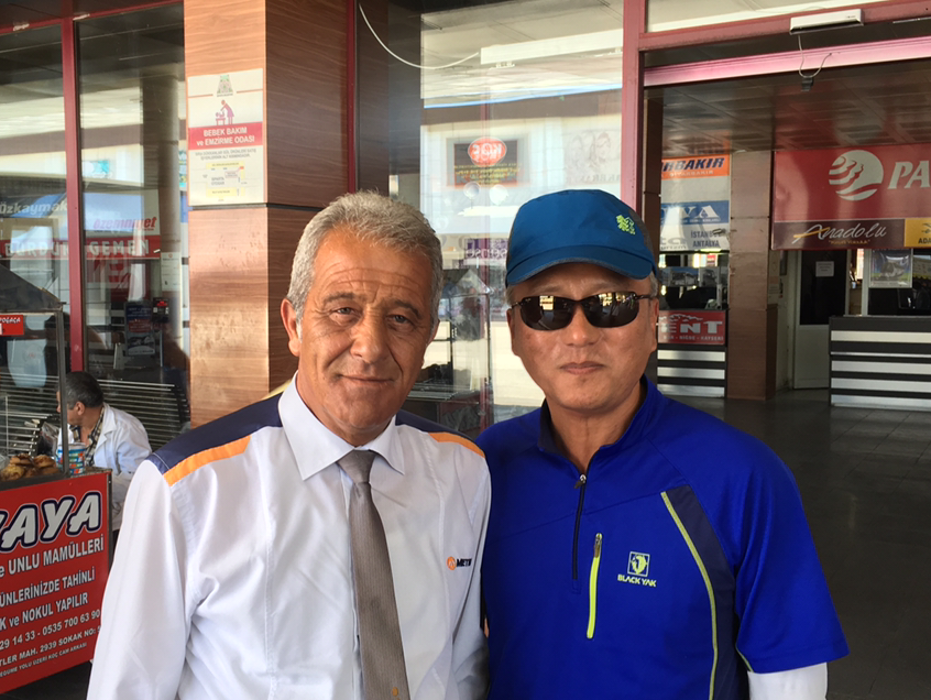 어제 악몽의 세시간을 거쳐 콘야버스터미날에 오자마자 여러회사의 매표소를 돌며 파묵칼레가는 버스표를 찾았다. 터키에서 지금 가장 크다는 메트로라는 회사의 오전 11시 출발표를 샀다. 여기서는 2+1 이라고 부르는 우리의 우등 같은 고속버스의 제일 앞줄 가운데 자리의 표를 샀다. 우리나라의 우등은 오른쪽 창가자리가 한줄이다. 그런데 여기 터키는 왼쪽 창가자리가 한줄이다. 표를 파는 직원이 왜 혼자가면서 독립된 한자리인 운전기사 뒤의 1번을 사지 않고 2번을 택하냐고 의아하게 생각했다. 낮에 햇빛이 워낙 강하여 서쪽으로 이동할 때는 왼쪽으로 해가 들이친다. 자연 커텐을 칠 수 밖에 없고 그러면 경치를 보지 못한다. 첫줄의 2번 자리는 운전기사보다 높은 위치에서 전면이 한장의 유리로 된 완전통창을 통하여 가장 좋은 시야를 볼 수 있을 것 같았다. 만약 그 자리가 이미 팔렸다면 6번이나 12번을 살 생각이었다. 6번과 12번은 해가 들지 않는 오른쪽 창가자리이고 버스의 필라(기둥)에 시야를 가리지 않는다. 터키에서 서쪽으로 이동할 시에는 2,6,12 동쪽으로 이동할 시에는 2,4,10번 좌석이 최적이라고 생각했다.