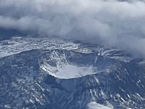 가오슝 가는 항로가 제주도 상공을 지나간다. 운 좋으면 한라산을 볼 수 있다고 생각했다. 그래서 모바일 체크인이 열리자마자 왼쪽 창가 자리를 잡았다. 날개가 시야를 가리지 않도록 가능한 앞 열에. 한반도가 꽁꽁 얼어붙은(서울이 영하 11도) 날이다. 한반도 상공은 아주 깨끗했다. 구름 한 점 없이… 충청도와 전라도 상공을 지나며 이제는 익숙한(제주도를 수시로 오가며 본) 광경이 눈앞에 펼쳐진다. 완도 앞바다를 건너며 구름이 깔리기 시작한다. 쫙 깔린 구름 때문에 제주도가 안 보인다. 운이 없다고 생각한 순간 한라산 정상부만이 구름을 뚫고 봉긋이 올라 있는 것이 보인다. 중년부인의 젖가슴 모양(?).