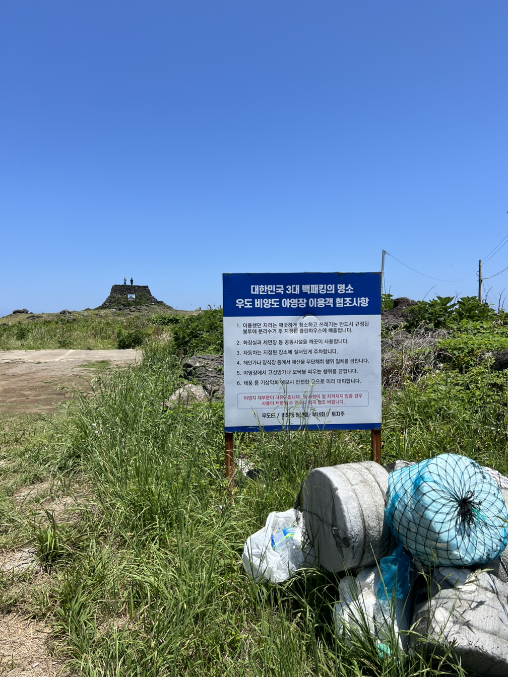 서귀포의 아들 집에서 하루 자고 종달항으로 차를 몰았다. 우도 가는 배편은 성산항에도 있다. 성산항에는 30분 간격이고 종달항은 한 시간 간격이다. 우도에는 하우목동항과 천진항이 있다. 작은 섬 치고는 배편이 많다. 그만큼 관광객이 많다는 얘기다. 어르신이 되어 난생처음 우도에 왔다. 점심 전이었지만 일단 비양도 연평리로 향했다. 텐트 치고 잘 장소부터 확인해야 마음이 놓인다. 여차하면 숙소를 잡아야 한다.