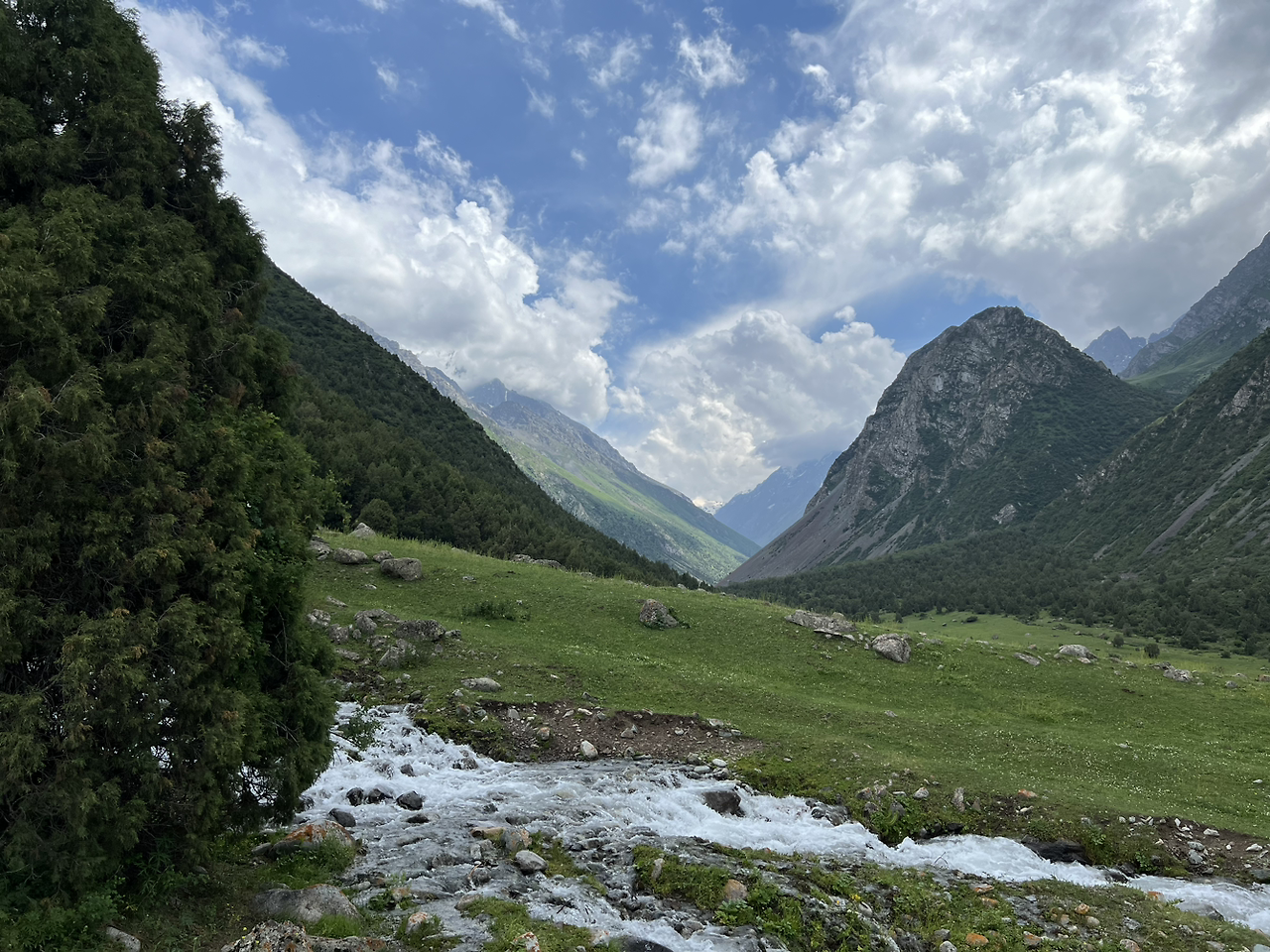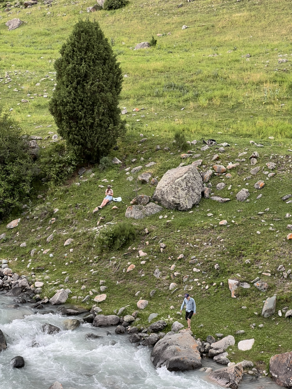 얀덱스 택시가 딱 한 시간 걸려 알메딘 협곡 입구(포장도로의 끝)까지 데려다줬다. 계곡을 따라 무지 많은 차들이 있었다. 일요일 오후를 즐기고 있는 비슈케크 시민들이다. 계곡을 따라 주차된 수많은 차를 보면서 이따가 나를 태워줄 차는 많네 하고 생각했다.
