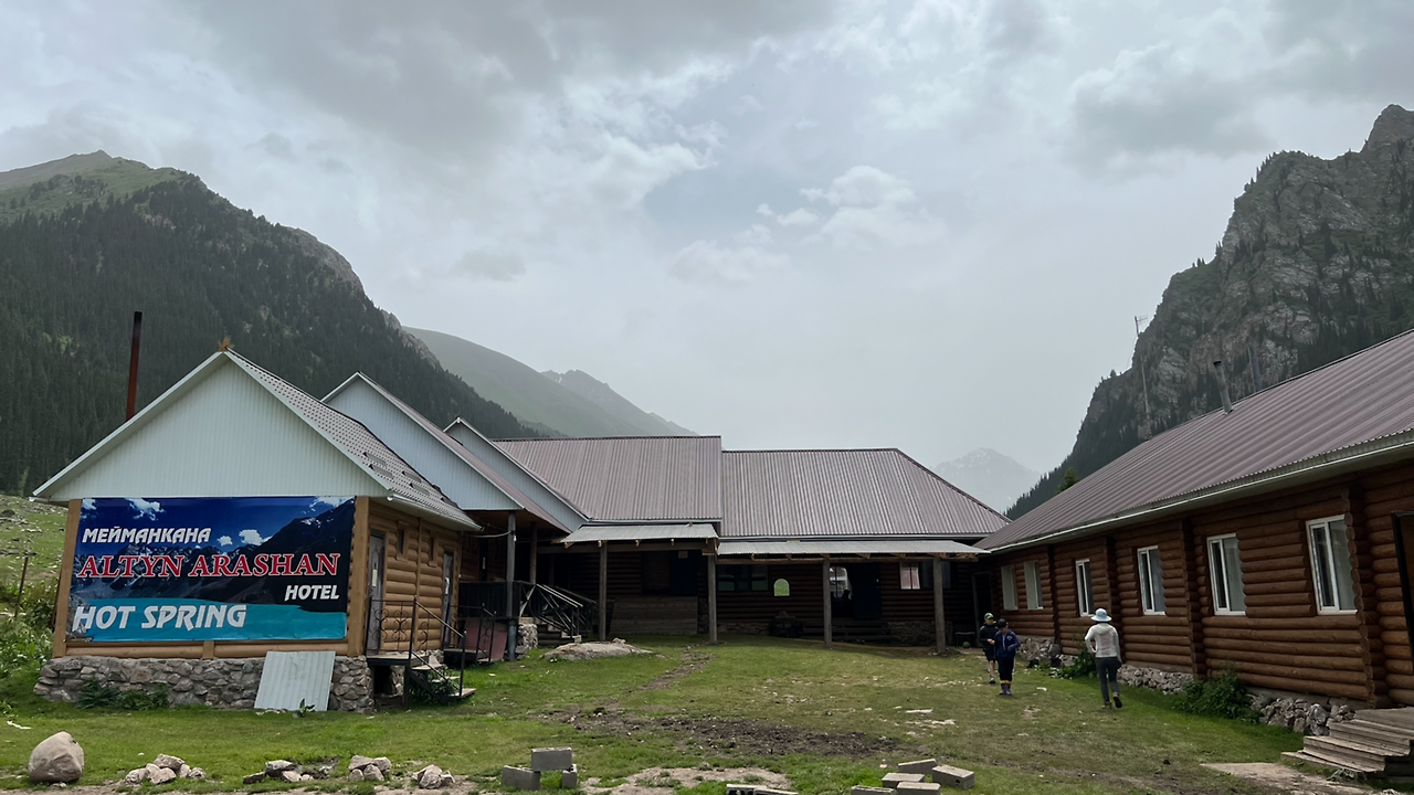 ELZA guesthouse 가 이 동네에서 제일 오래되고 크다. 한국 여행객에게도 유명하다. 예약 없이 일단 갔더니 개인실은 이미 만실이고 공용실의 침대밖에 없단다. 그러면서 바로 앞 Altyn Arashan Hotel(이름만 호텔이다)에 가보란다. 처음 보여준 방은 침대가 4개 있는데 혼자 사용하는데 5500 솜이고 두 번째 보여준 방은 한창 공사 중이라 어수선한 건물입구의 끝방인데 침대가 두 개 있고 어설픈 전등은 있지만 전기 콘센트도 없는데 2000 솜이란다. 아침식사 포함이고 온천시설 이용도 포함이다. 어렵게 들고 온 양압기를 사용 못하지만 하루 정도 안 써보는 것도 경험이다. 일단 싼 방에서 하루 자 보기로 했다. 당연히 공용 화장실과 세면대를 써야 한다.