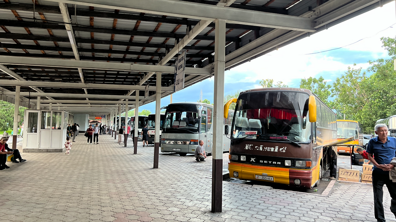 저녁 8시경에 슬리퍼 끌고 터미널에 나갔다. 키르기스스탄 전역으로 가는 버스, 미니버스, 합승택시가 여기서 출발한다. 카자흐스탄의 알마티와 우즈베키스탄의 타슈켄트로 가는 야간버스들이 승객들을 태우기 시작한다. 그 시각에 7시간 걸리는 카라콜로 가는 버스와 미니버스들도 승객 모객에 열심이다. 13시간 내지 15시간 걸린다는 키르기스스탄 제2의 도시 오쉬로 가는 미니버스와 택시들이 많다. 여기저기 "오쉬 오쉬"하는 소리가 들린다. 24시간 열고 있는 식당과 가게들도 아직 한창이고, 터미널 건물 안에서 미용실도 아직 영업 중이다.
