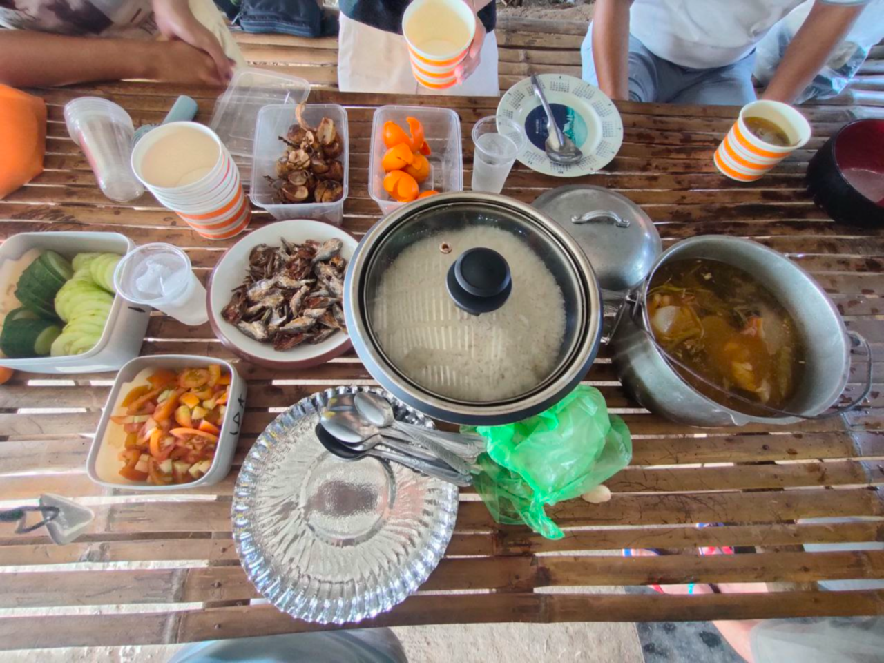 계곡물을 막아 유원지를 만든 곳 물가에 전망 좋은 자리가 있다. 저기서 맥주나 한 잔 마시면 좋을 것 같아 앉았는데 자릿세가 200페소란다. 시원한 맥주도 없단다. 투어비(1600페소)에 점심이 포함인데 어디서 무엇을 먹을까 심히 궁금하다. 아침을 먹었던 구멍가게에 도착했다. 여기서 점심식사도 하고 샤워도 한단다. 오늘 트레킹의 베이스캠프였다. 점심식사가 준비되는 동안 맥주를 마시며 내 샤워차례가 오기를 기다렸다.