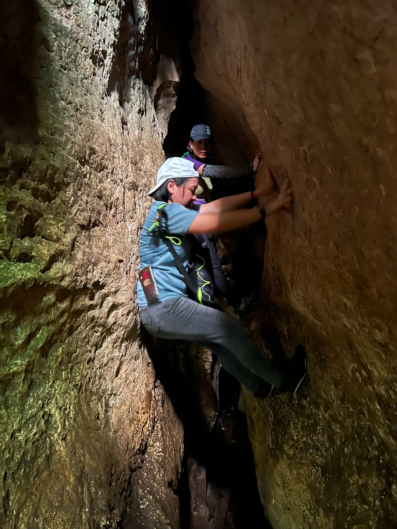 장애물이 나타났다. 갑자기 바닥이 뻥 뚫렸다. 이삼 미터 되는 구간의 바닥이 없다. 아래를 보니 1.5미터 정도의 깊이에 바닥이 보인다. 떨어져도 죽지는 않을 것 같다. 그렇지만 떨어졌다가는 다리나 발목을 다칠 것이고, 자력으로는 기어 나오지 못할 것이다. 가이드가 시범을 보인다. 한 면에 등을 대고 손과 발로 반대 면을 지지하면서 구간을 통과한다. 중력을 이길만한 힘이 팔다리에 필요하다. 어르신이 그럴 힘이 있을까? 칠순이 지난 선배도 함께 있는데... 등과 손은 버틸만한데, 발을 디딜만한 곳이 마땅치 않다. 상당히 벽이 매끄럽다. 가이드가 발을 놓을 만한 지점을 일일이 짚어주며 한 명씩 통과하는 것을 도와준다. 평생 이런 자세로 이런 지점을 통과해 본 적 없는 모두가 통과에 성공했다.