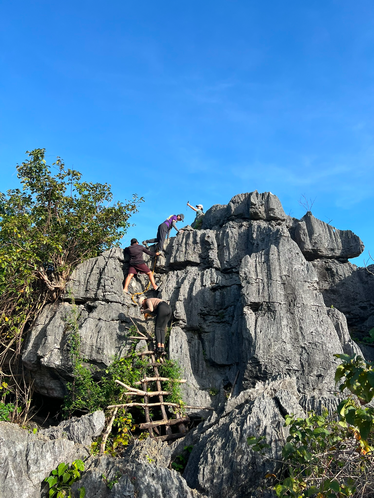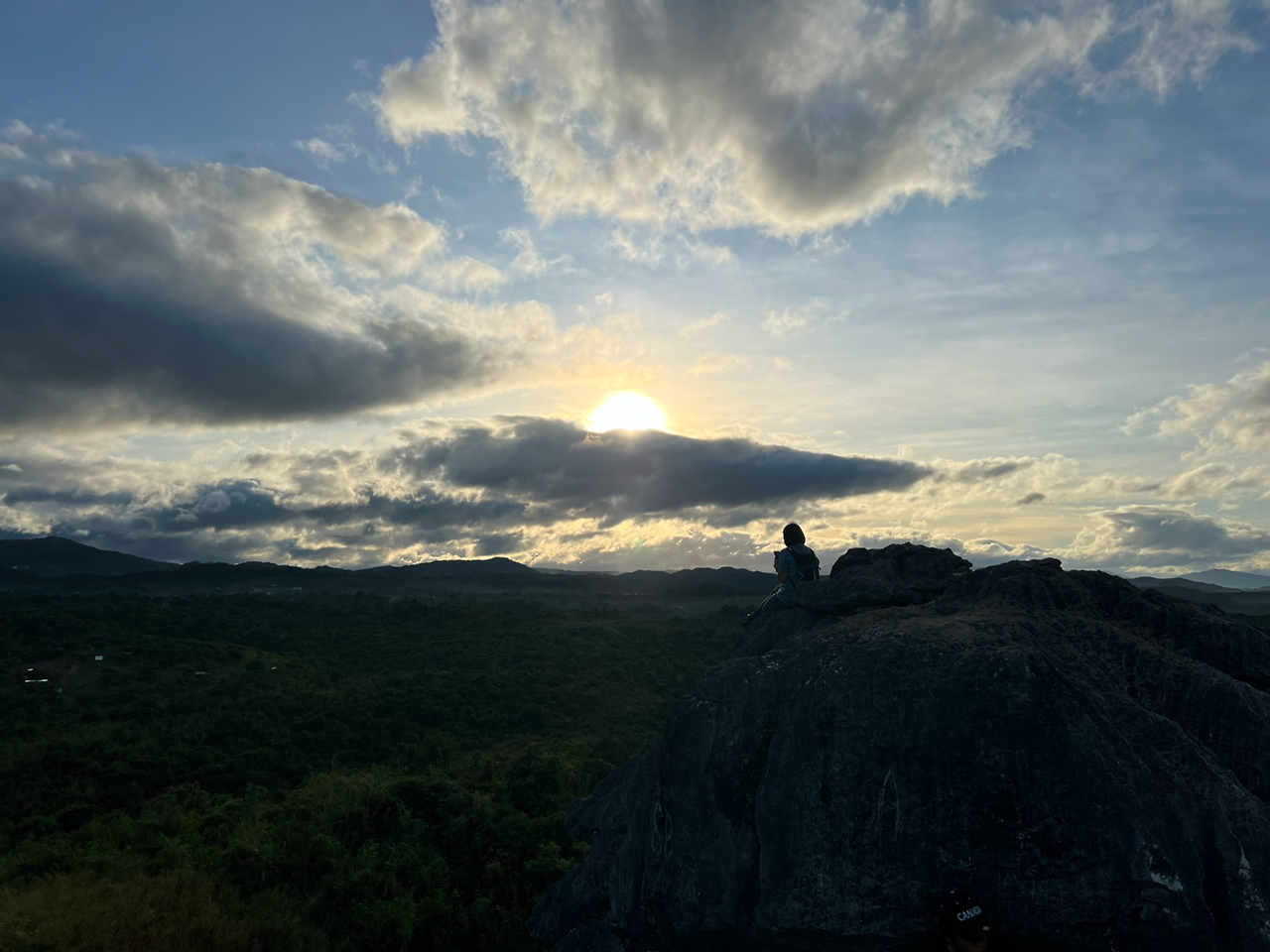 현지가이드가 제일 앞서 간다. 그녀는 목욕탕에서나 신을 법한 삼선슬리퍼를 신고 있다. K2 히말라야도 오를 수 있는 중등산화를 신은 내 발에 자연스럽게 눈이 간다. 땀이 좀 났지만 45분 만에 Mt. Secret 정상에 올랐다. 어렵지 않았다. 동네 뒷산 정도의 산행이다. 해가 뜨면서 점점 더워졌다. 정상부는 암벽으로 구성되어 있다. 그렇지만 지난 Nagpatong Rock( https://brunch.co.kr/@jkyoon/759 )처럼 험하지는 않았다.