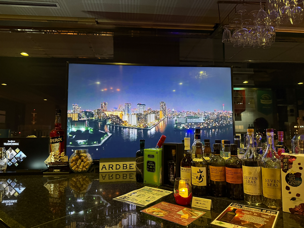마지막 밤은 아사히카와 중심가 호텔에 묵었다. 저녁을 근처 식당에서 스시와 사케로 배를 채우고 호텔 지하의 온천탕을 찾았다. 상쾌한 몸이 은근 마음을 들뜨게 하는데 이제 겨우 9시가 조금 넘었다. 도저히 그냥 잘 수가 없다. 호텔 14층에 바가 있다. 바에서 보는 야경은 그저 그렇다. 인구 50만 도시의 야경이 별것 있겠냐 싶다. 바의 한쪽 구석진 자리를 안내받았다. 큰 평면 모니터에 근사한 야경이 고정되어 있다. 도쿄타워가 보인다. 수면에 물결치는 모습과 건물의 조명이 수면에 반사되어 몽환적 광경을 보여주고 있다. 저기를 가보고 싶단 생각이 들었다. 사진을 찍어 AI에 물으니 도쿄 월섬 부근이라고 한다. 새로운 목적지가 하나 생겼다.