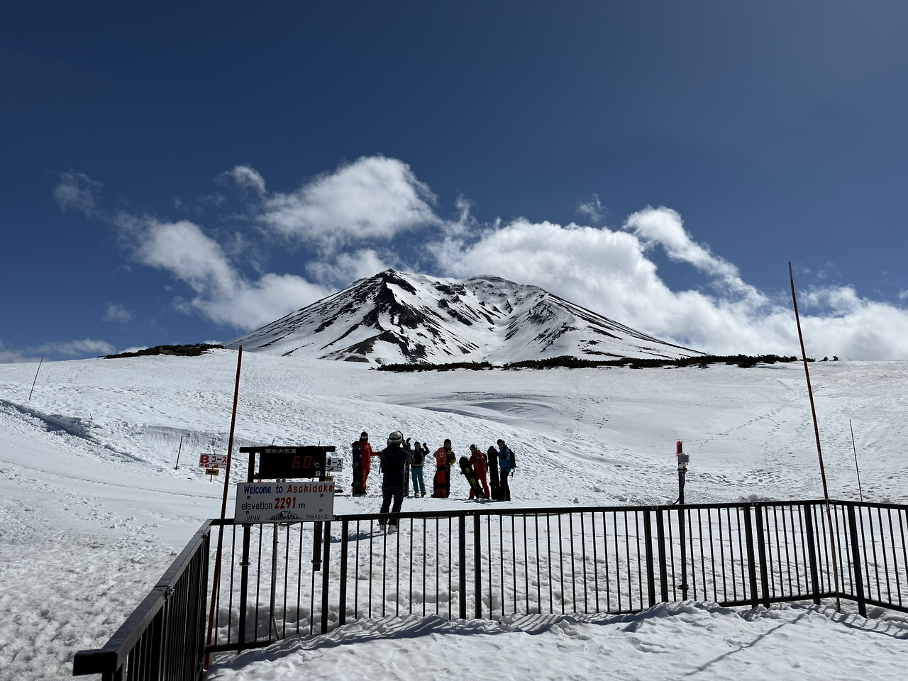 아사히다케는 활화산이다. 정상부에 움푹 들어간 골짜기에서 수증기가 무럭무럭 피어난다. 정상이 눈앞에 가까이 보인다. 맘먹고 오르면 두 시간 이내에 충분히 오르겠다. 그런데 발이 눈 속에 푹푹 빠진다. 눈신(?)이라도 있어야 갈 수 있다. 함께 오른 사람들은 스키나 스노보드를 타고 저 멀리 사라진다.
