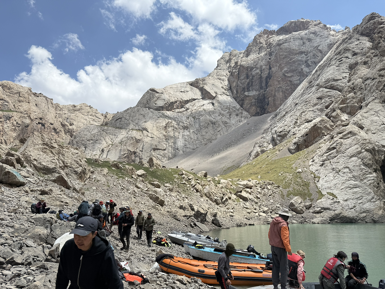 경치에 압도 당해 요단강 생각하며 기다리고 있는데 갑자기 뒤에서 한국말이 들린다. 한국 단체 관광객이 도착한 것이다. 허걱! 정말 대단한 민족이다. 그들과 함께 보트를 탔다. 그리고 오랜만에 한국말했다. 일행은 전부 18명이고, 그중에 남자는 셋, 평균 나이는 70세란다. 내가 말 타고 지난 7km도 걸어서 왔단다. 고산증세를 느끼는 평균 70세 어르신들이. 정말 용감한 할머니들이다. 어르신들이 사진을 잘 찍기 위해 작은 보트에서 일어난다. 난 기겁했다. 오백미터 정도 호수 안쪽으로 들어갔다가 돌아오는데 30분 정도. 오랜만에 만난 장관이다. 남미의 토레스 델 파이네, 이탈리아의 돌로미테, 스위스의 융프라우에도 절대 뒤지지 않을 장관이다. 이렇게 비교를 해야 어느 정돈지 감이 오려나?(3510m 고산에 있는 무시무시한 암벽산에 둘러 싸인 에메랄드 호수)