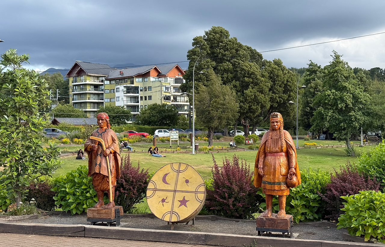 테라스에서 담배를 물고, 대문을 열고 나가는 노인과 눈인사를 했고, 잠시 뒤에 나도 대문을 열고 길로 나와 비야리까 화산 쪽을 쳐다봤다. 낮게 드리워진 구름이 화산을 거의 전부 가리고 있었다. 이상한 모자와 복장을 하고 긴 머리를 한줄기로 땋은 여인이 종아리를 드러내고 어울리지 않는 까만 구두를 신고 나를 지나쳐 가는 것을 보면서 저 복장이 마푸체족 전통 복장인가 했던 것도 기억났다.