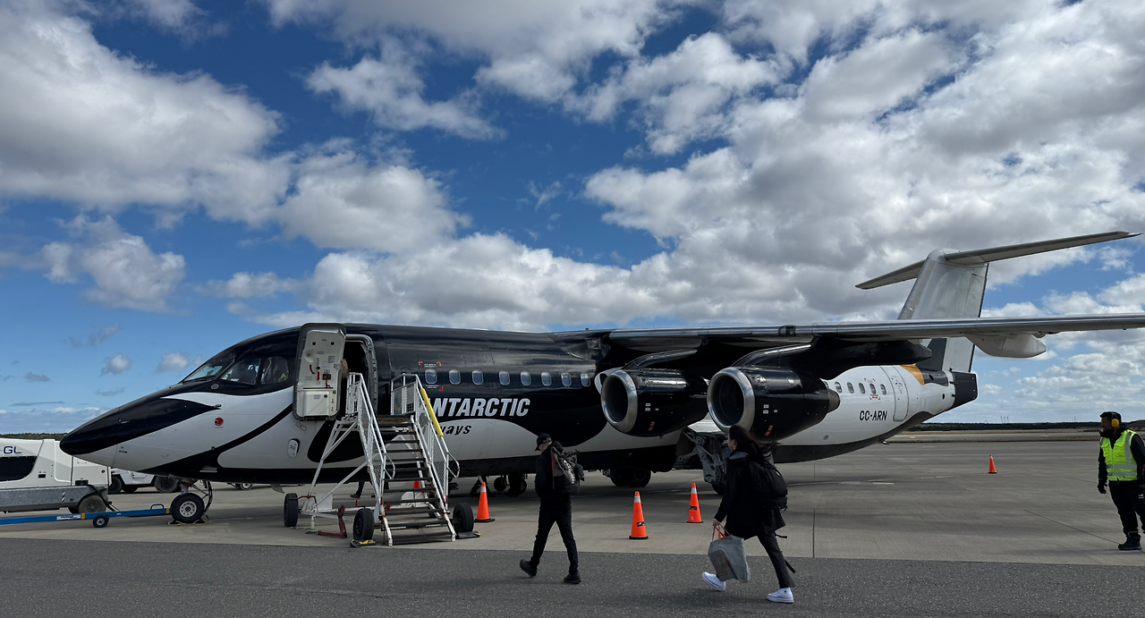 칠레의 푼타아레나스에서 페리선을 타고 올 수도 있지만 비행기를 타고 왔다. DAP라는 항공사가 푼타아레나스에서 직항 편을 거의 매일 띄운다. 비행기를 타면 1시간 이내에 도착하는데, 페리선을 타면 30시간 이상 걸린다. 그것도 고속버스 의자 같은 자리에 앉아서 버텨야 한단다. DAP항공은 푼타아레나스를 중심으로 남극기지로 가는 항로도 갖고 있다. 남극 땅(대륙도 아니고 킹조지섬)을 밟아보는 당일투어를 진행하는데 비용이 6,600불이다.